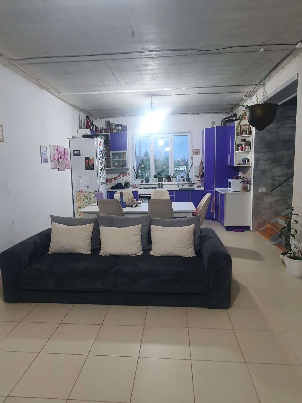Таунхаус: по документам дом и земельный участок- не доля. Собственный отмежëванный участок. Построен из керакама , утеплëн мин. плитой - зимой тепло, летом не жарко. Все коммуникации: электричество, вода- скважина общая на несколько таунхаусов, канализация - собственная выгребная яма, отопление и горячая вода - свой газовый котëл. Установлена система очистки воды. В кухне-гостиной , санузлах и прихожей водяной тëплый пол. Качественный свежий ремонт, есть незначительные недоделки, но всë основное и требующее крупных вложений сделано качественно из хороших материалов. Планировка: большая кухня-гостиная, 3 спальни,большая гардеробная, два санузла, кладовка, встроенный гараж, функциональный подвал. Перед домом личная асфальтированная крытая парковка. За домом ухоженный участок с насаждениями, газоном и оборудованной зоной барбекю  и беседкой. Расположен в котеджном посëлке через дорогу от современного микрорайона Южный город с хорошими современными школами, детскими садами, магазинами и всей необходимой для современной и комфортной жизни инфраструктурой. Остановка общественного транспорта в 5 минутах ходьбы, примерно столько же до блжайшего супермаркета ( Магнит семейный). Две остановки до ТЦ Амбар