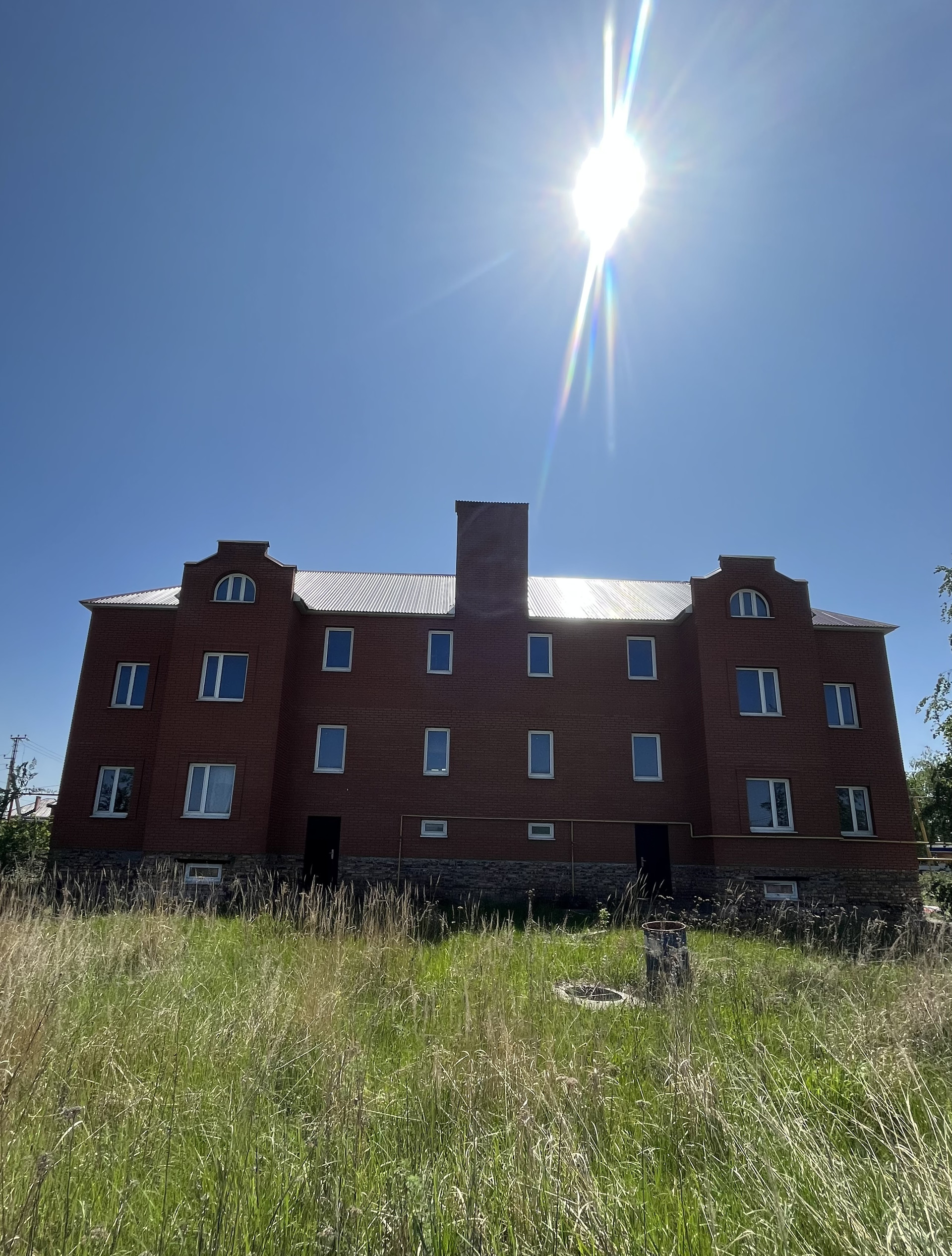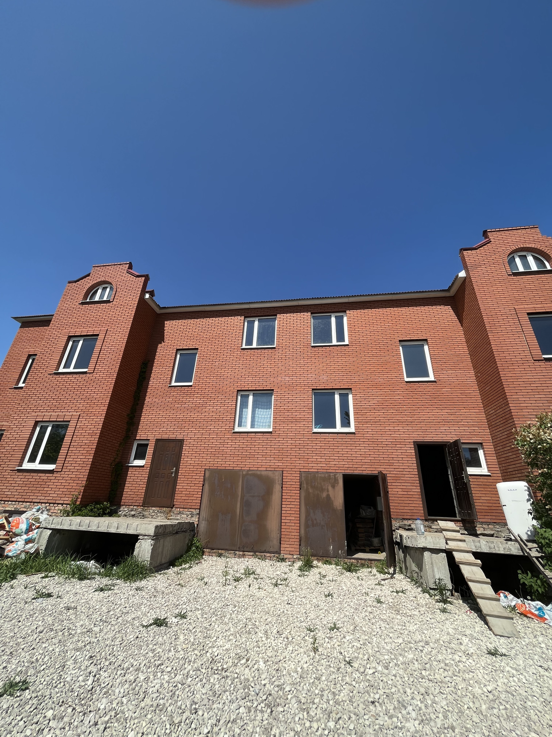 Общая площадь  двух домов 600 кв м . По 300 кв. м. На каждый дом . В доме 3 этажа , гараж , подвал .  Коммуникации:  Свет , газ , скважина.
