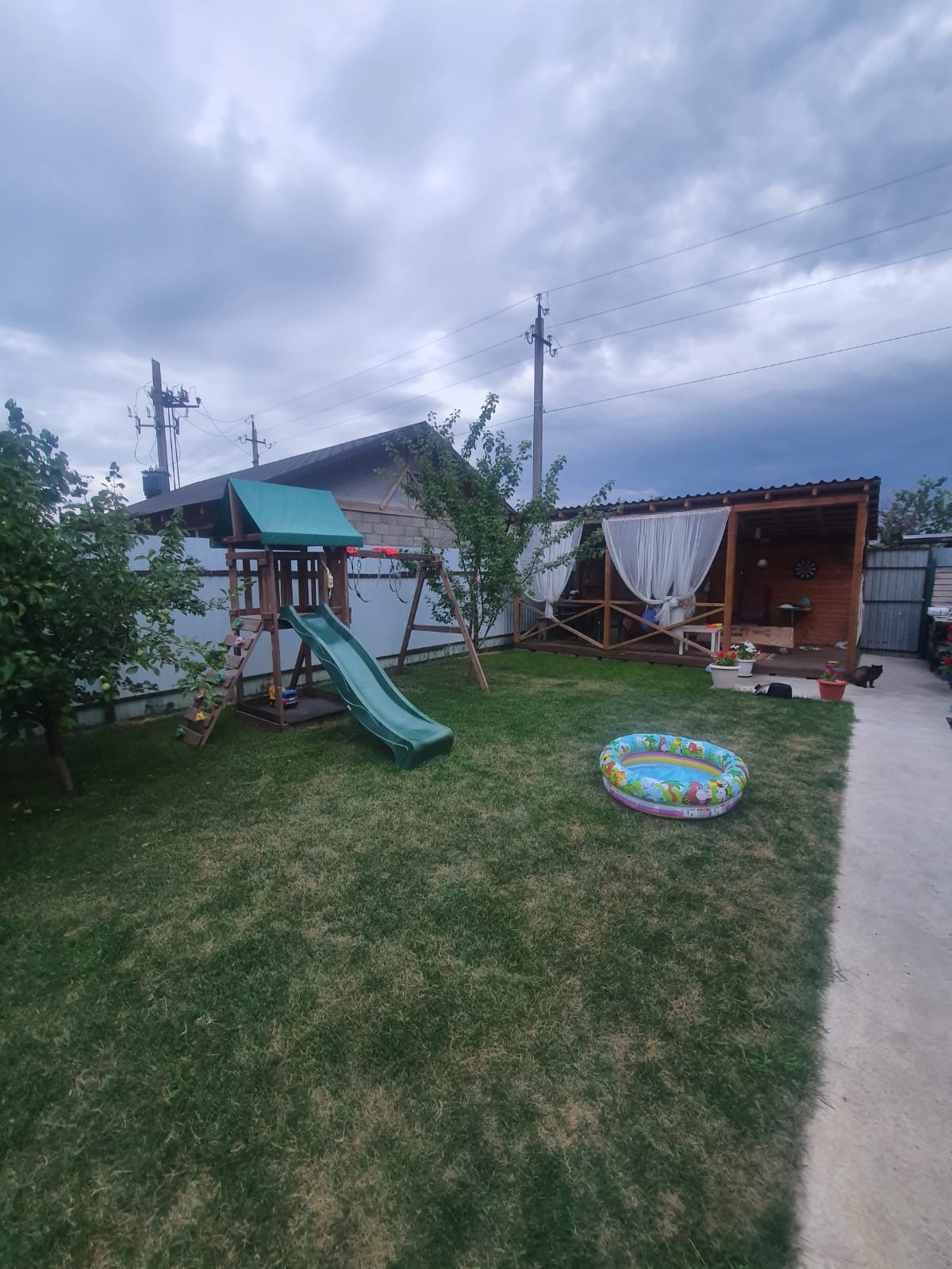 Земельный участок 3 сотки с насаждениями ( абрикос, яблоня, груша, слива, вишня, клубника, малина, 7 видов винограда, много роз и других насаждений). Часть участка застелена газоном, большая деревянная беседка, мангальная зона.