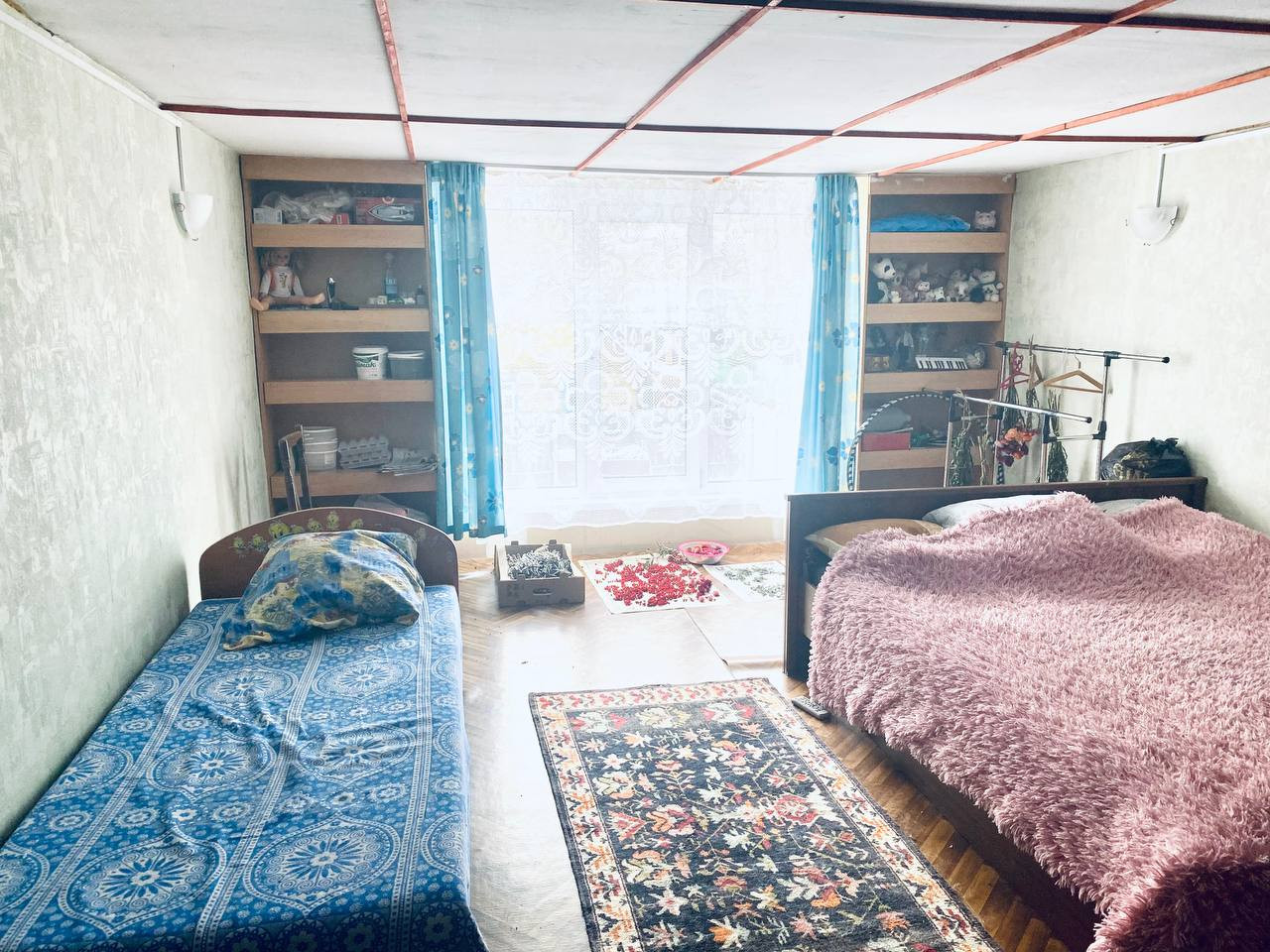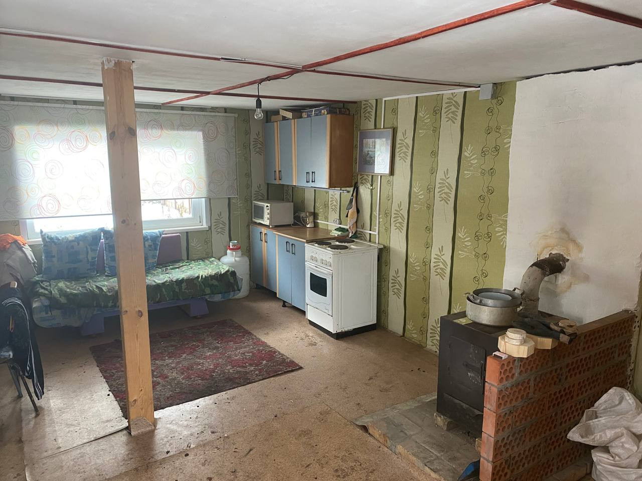 Дом на бетонной опалубке с вентиляцией: 1этаж -24кв.м с печкой Теплодар + летняя веранда 10 кв.м и на 2-ой этаж поднимаемся по ступенькам на облагороженную мансарду - 18 кв.м c балконным окном в пол.