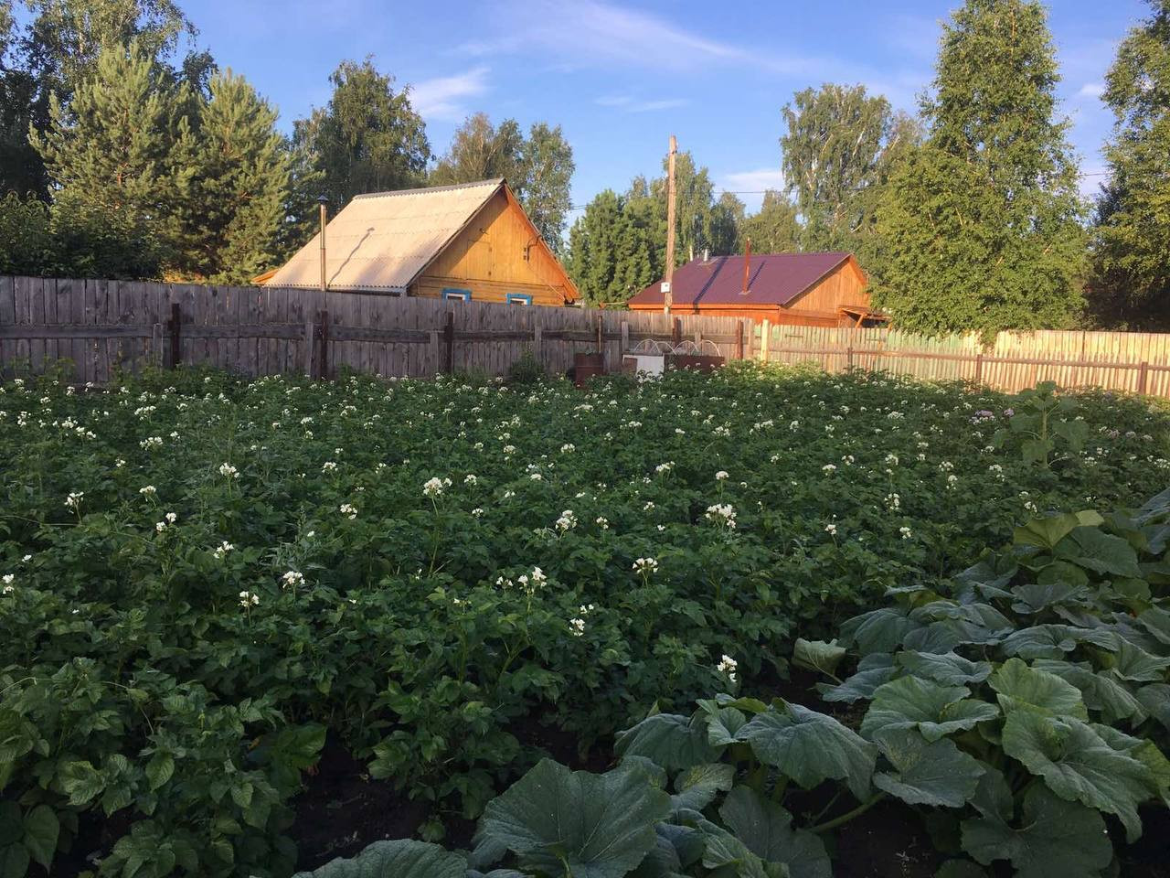 Участок ровный, квадратный, граничит с березовой рощей, земля как пух - родит как бешенная)