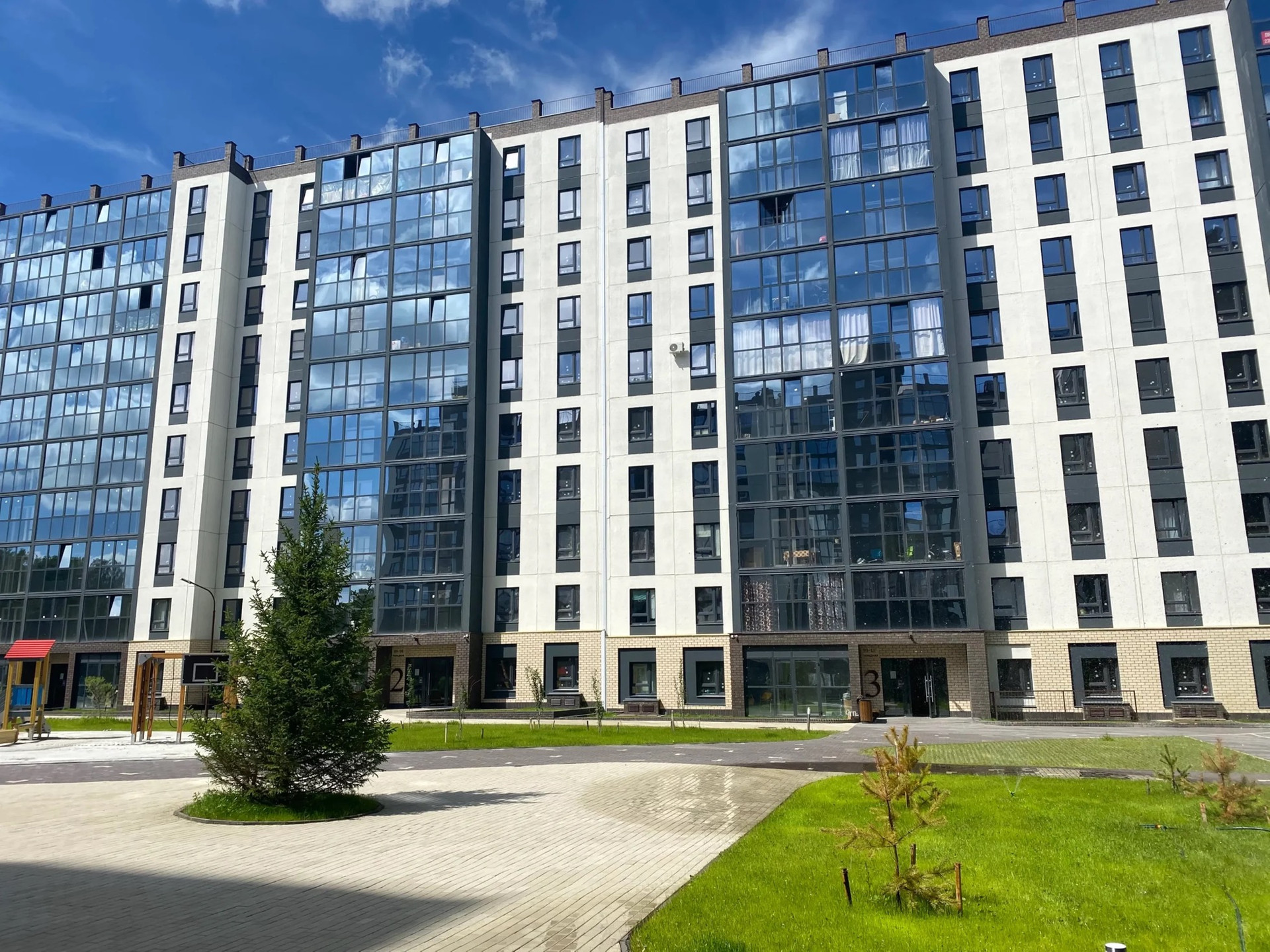 Дизайнерская отделка парадных. Собственный выход в лес, лесная тропа, спортивные площадки и детские игровые зоны. Огорожена территория, видеонаблюдение и дворы без машин. На время строительства муниципального детского сада работает частный детский сад, бесплатный.