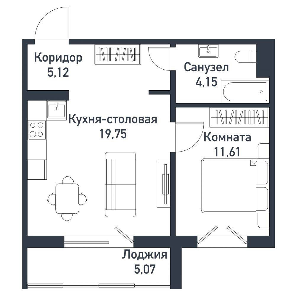 Общая площадь 40.6 м2