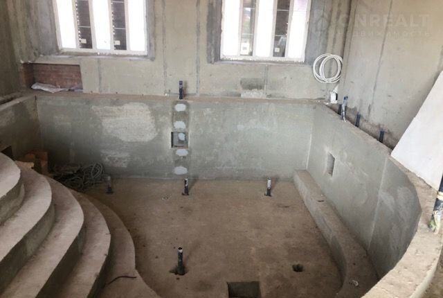 - сауна с бассейном, душевая, зона отдыха, хамам, чаша бассейна под покраску или под покрытие лаком. Лестница на второй этаж. (железный каркас залит бетоном)