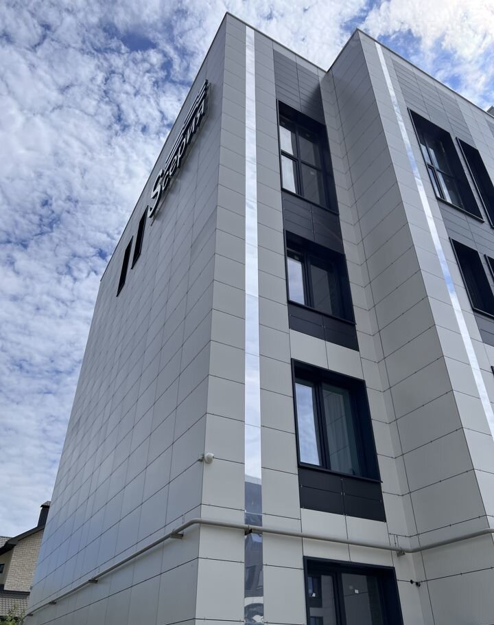 Минимальная толщина кирпичной стены в Белом острове 40 см. Далее мы кладем 2 слоя утеплителя из каменной ваты толщиной 5 и 7 см. Утеплитель кладется в шахматном порядке для исключения мостов холода. Украшают наши дома фасады керамогранит, алюмокомпозит и зеркальный композит. Зеркальные элементы позволят дому удивительным образом реагировать на свет и движение солнца.
