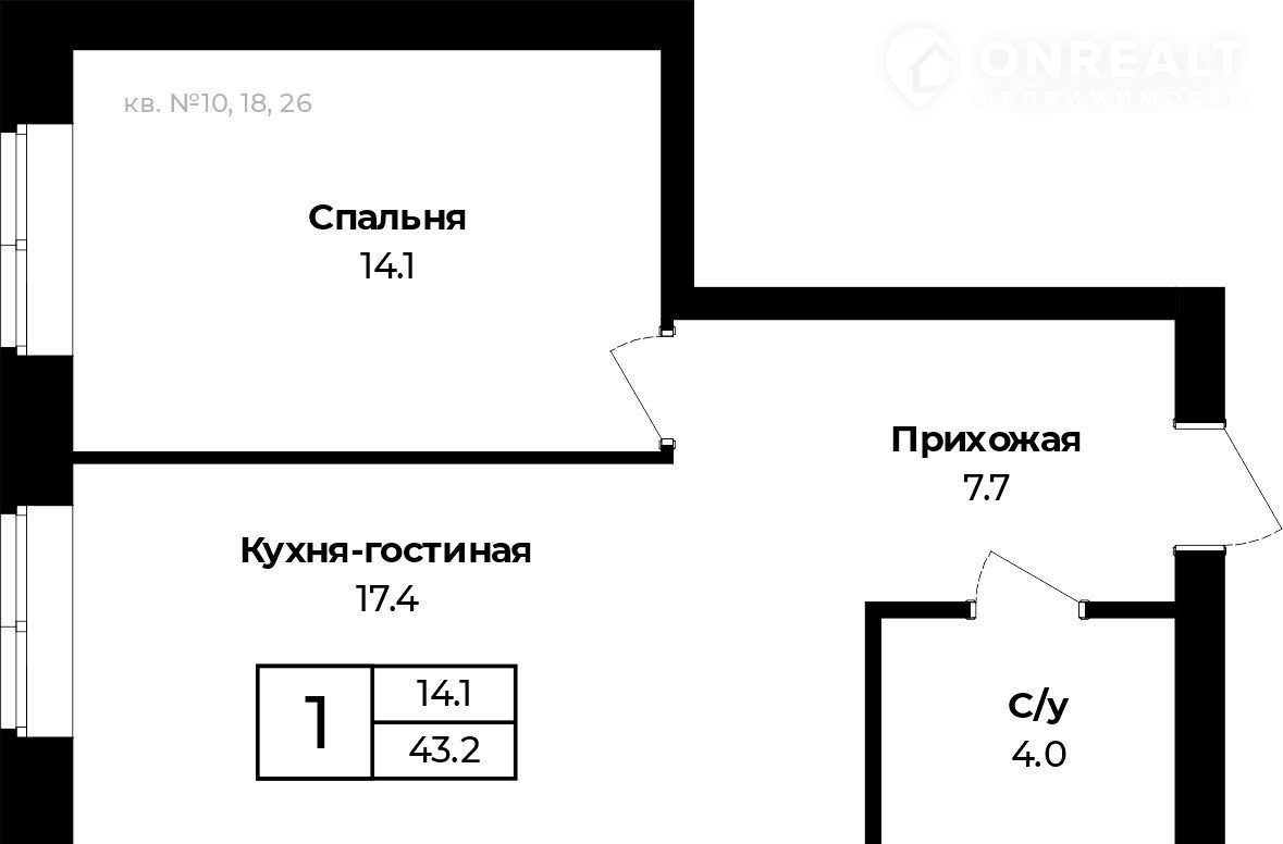 Общая площадь 43.2 м2