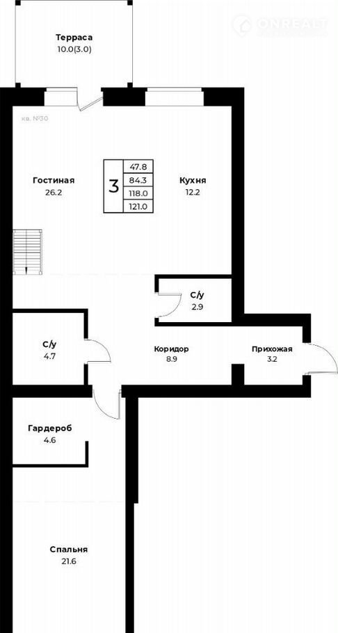 Общая площадь 121 м2