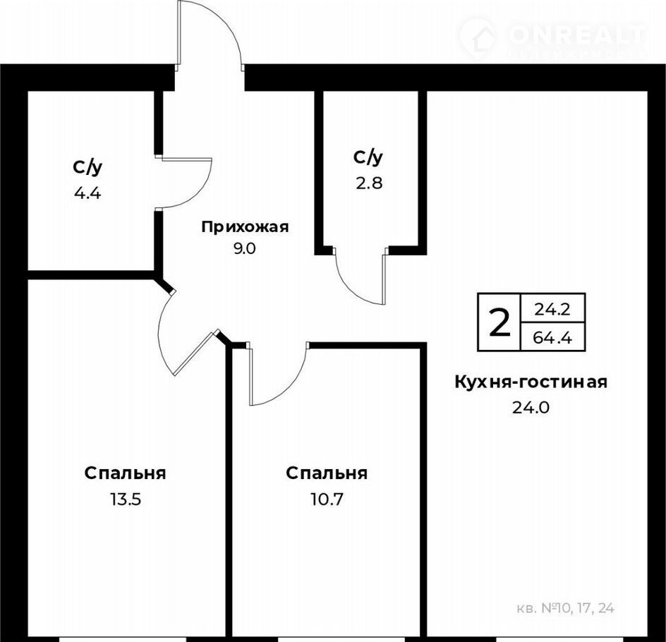 Жилая площадь 24.2 м2