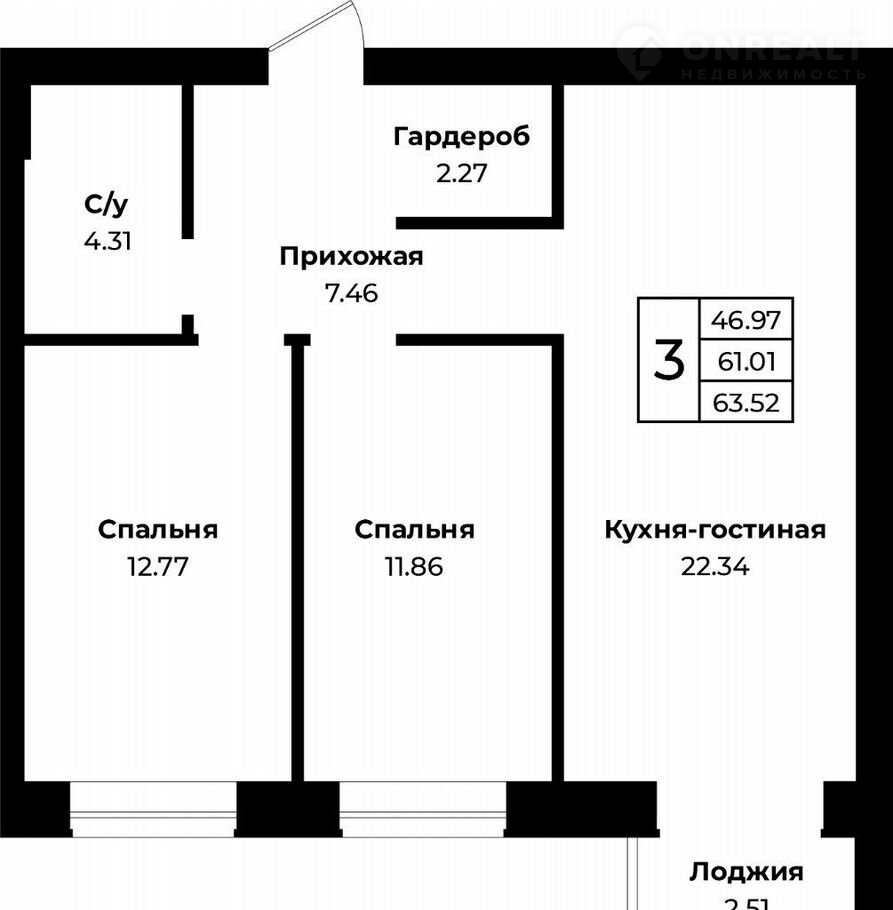 Общая площадь 63.5 м2