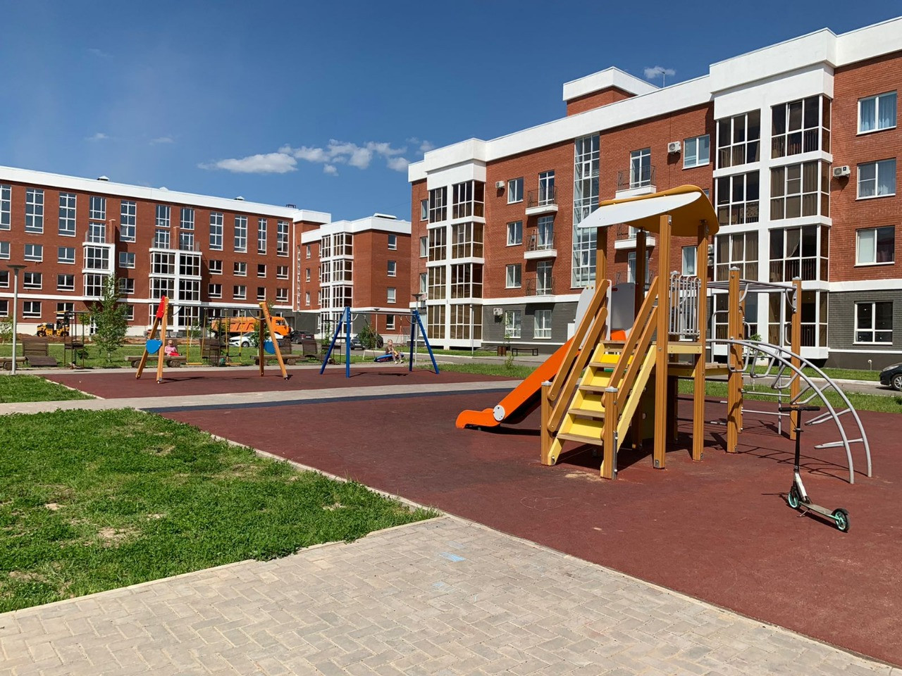 Закрытая территория без машин, вход по смарт-пропускам, детские и спортивные площадки, зоны барбекю, собственный парк, парковка за пределами двора-парка, в зимнее время года - ледовый каток.