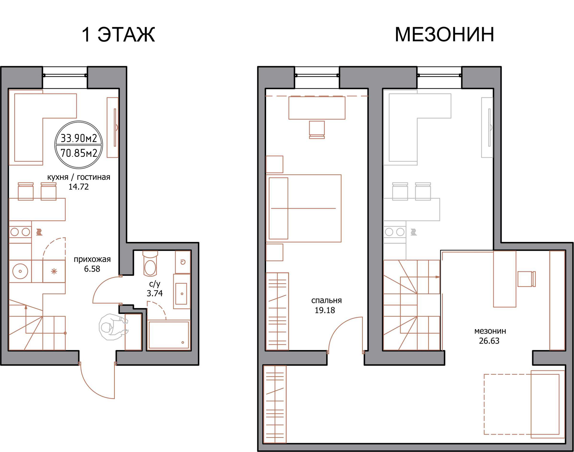 Санузел 1 раздельный