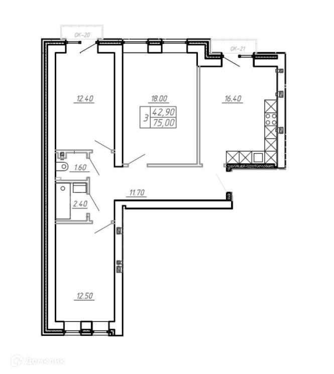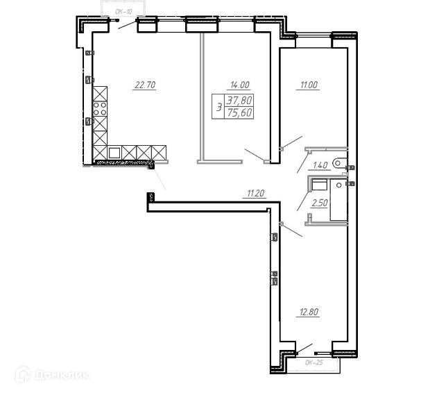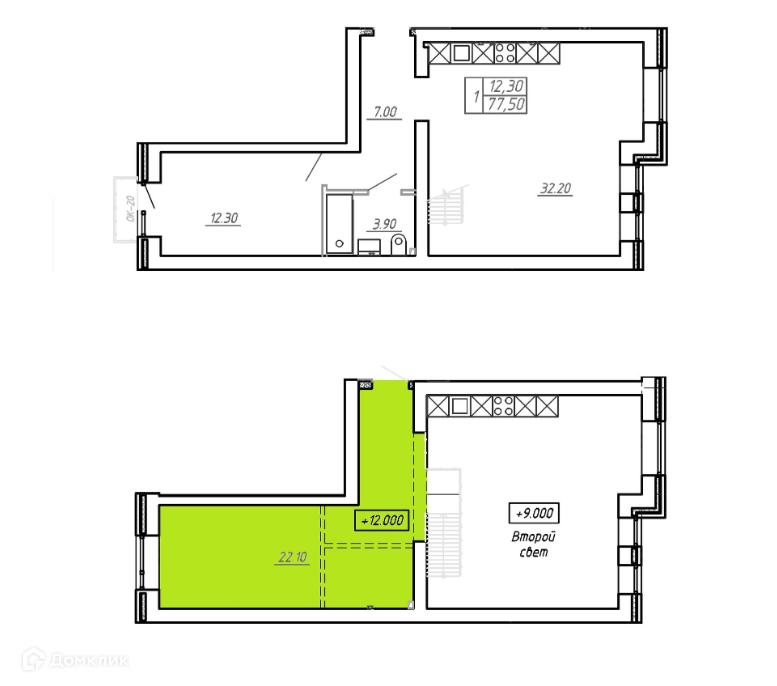 Общая площадь 77 м2