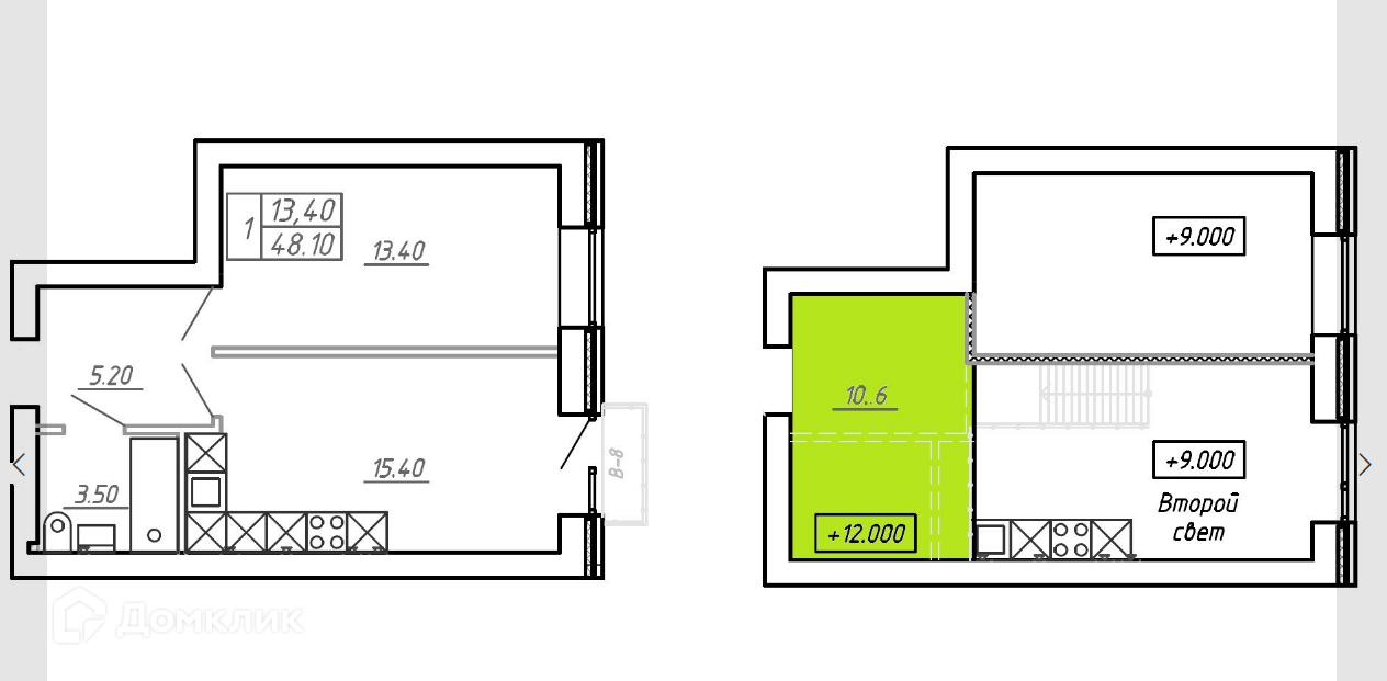 Балкон, лоджия 1 балкон