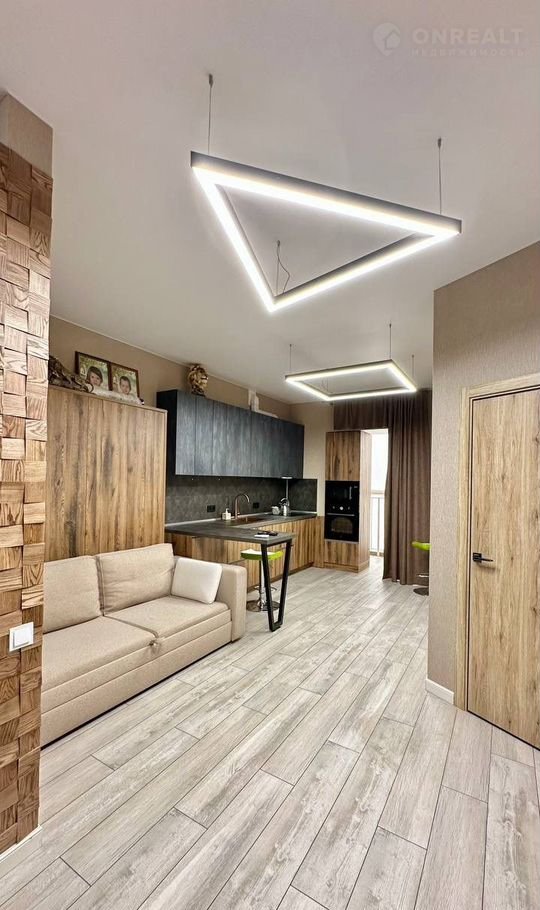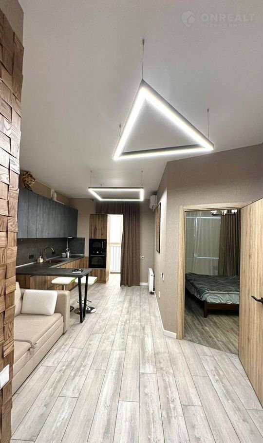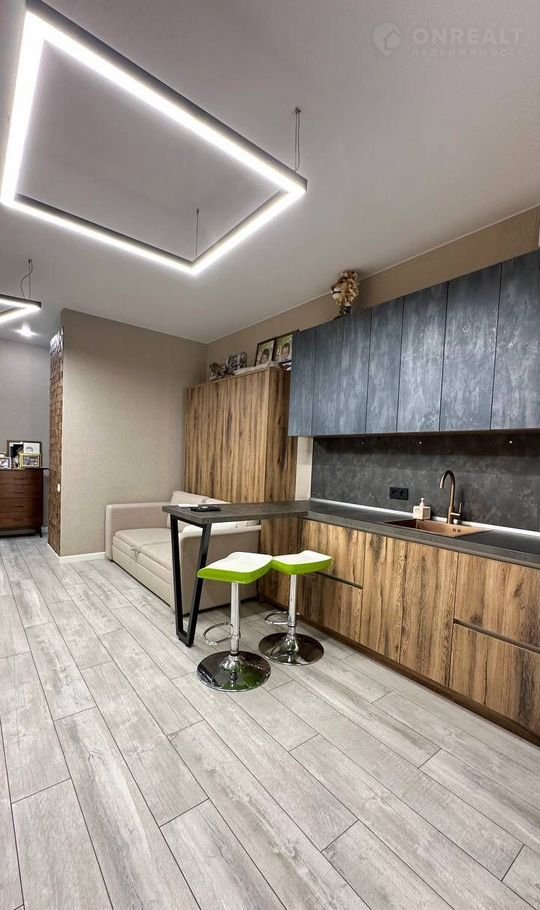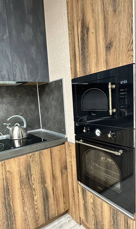 В квартире сделан современный дизайнерский ремонт: натяжные потолки, дорогие обои в спокойных тонах, качественный керамогранит и ламинат, установлены два кондиционера. В квартире много света, она очень уютная. Идеальный вариант зайти и жить, так как в квартире останется практически все, что видите на фотографиях: мебель и техника.