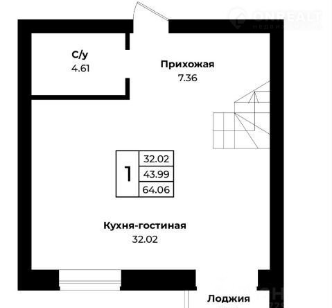 1-комнатная квартира, 64.1 м2, этаж 1 / 4, на продажу в посёлке Пригородном, Озёрная улица, 22А