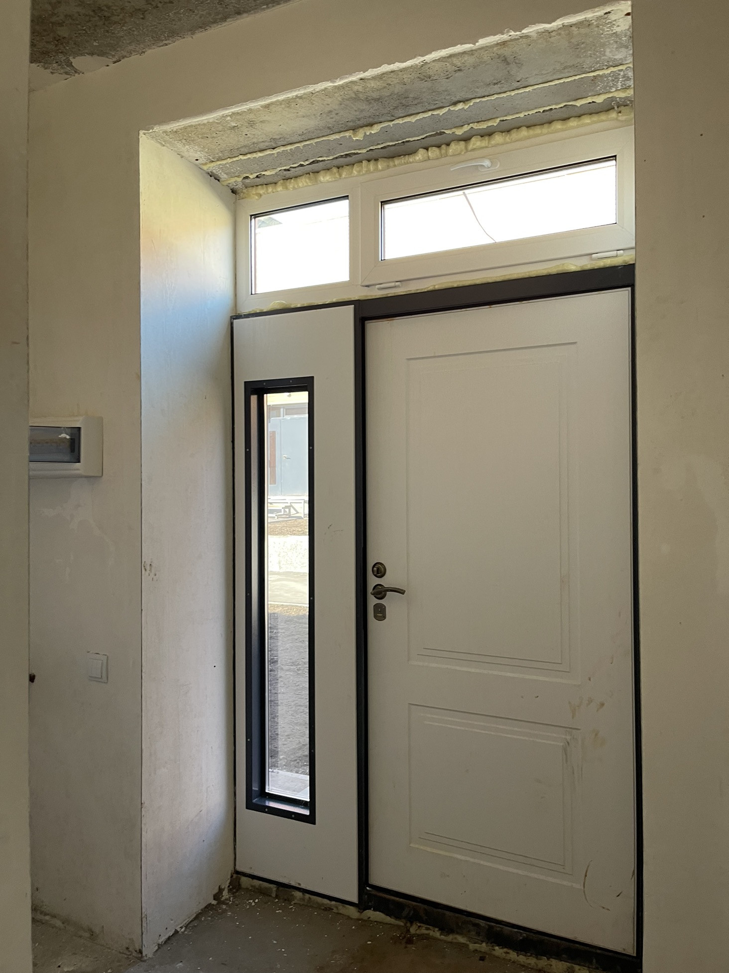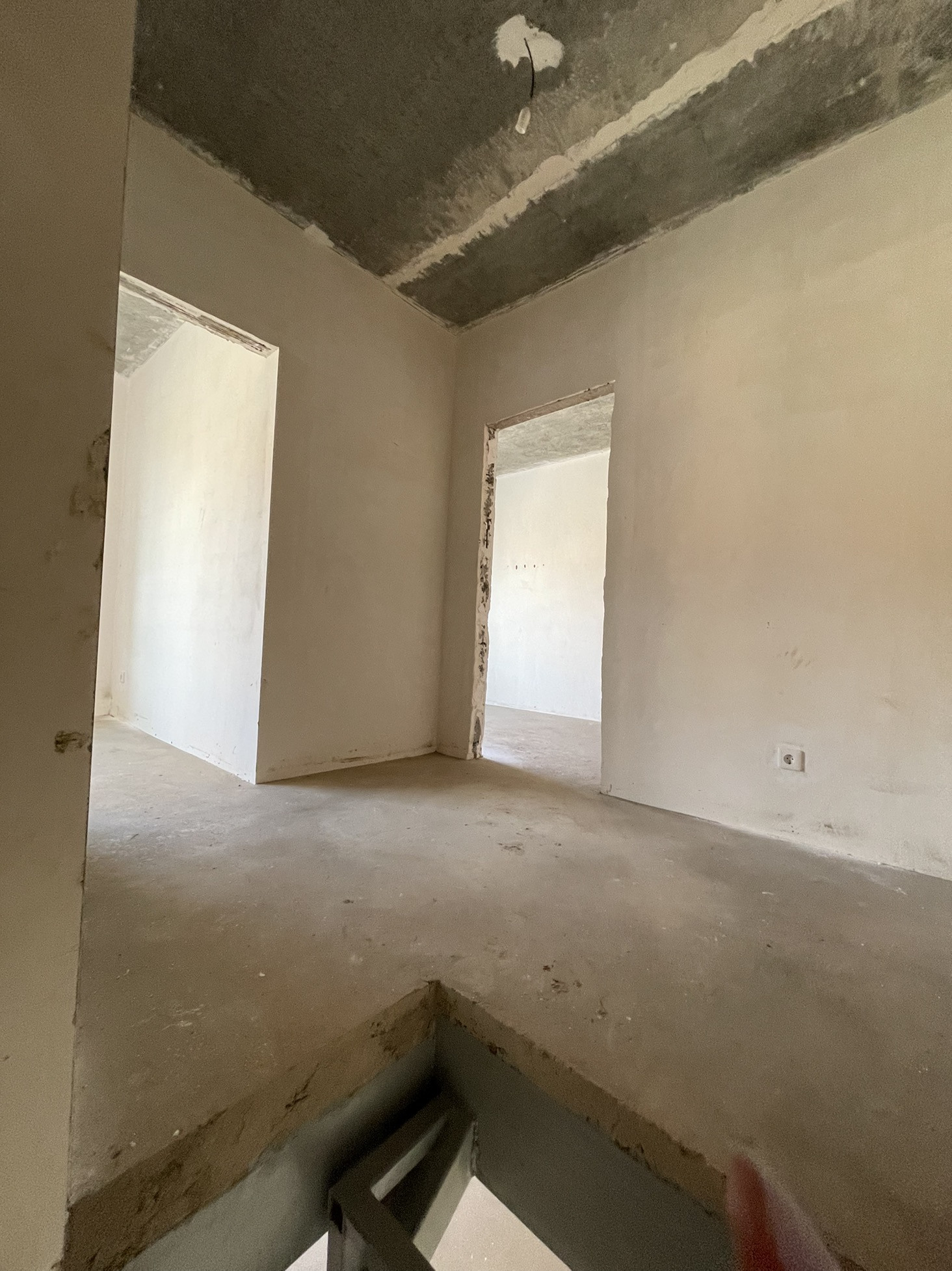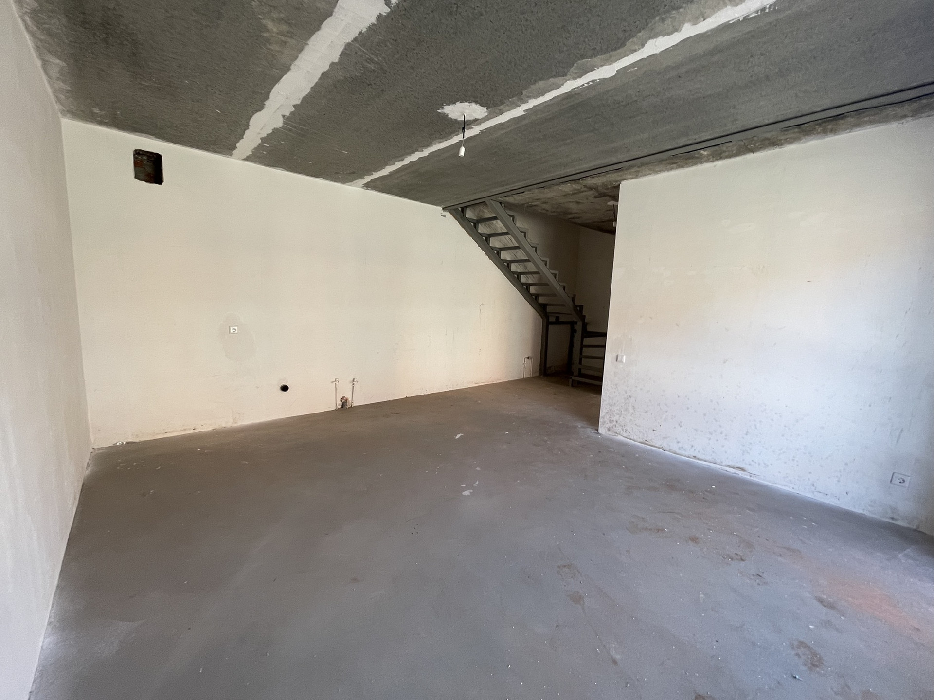 В доме Предчистовая отделка: стены выполнены механизированной штукатуркой, на полу полусухая стяжка, лестница - металлокаркас.