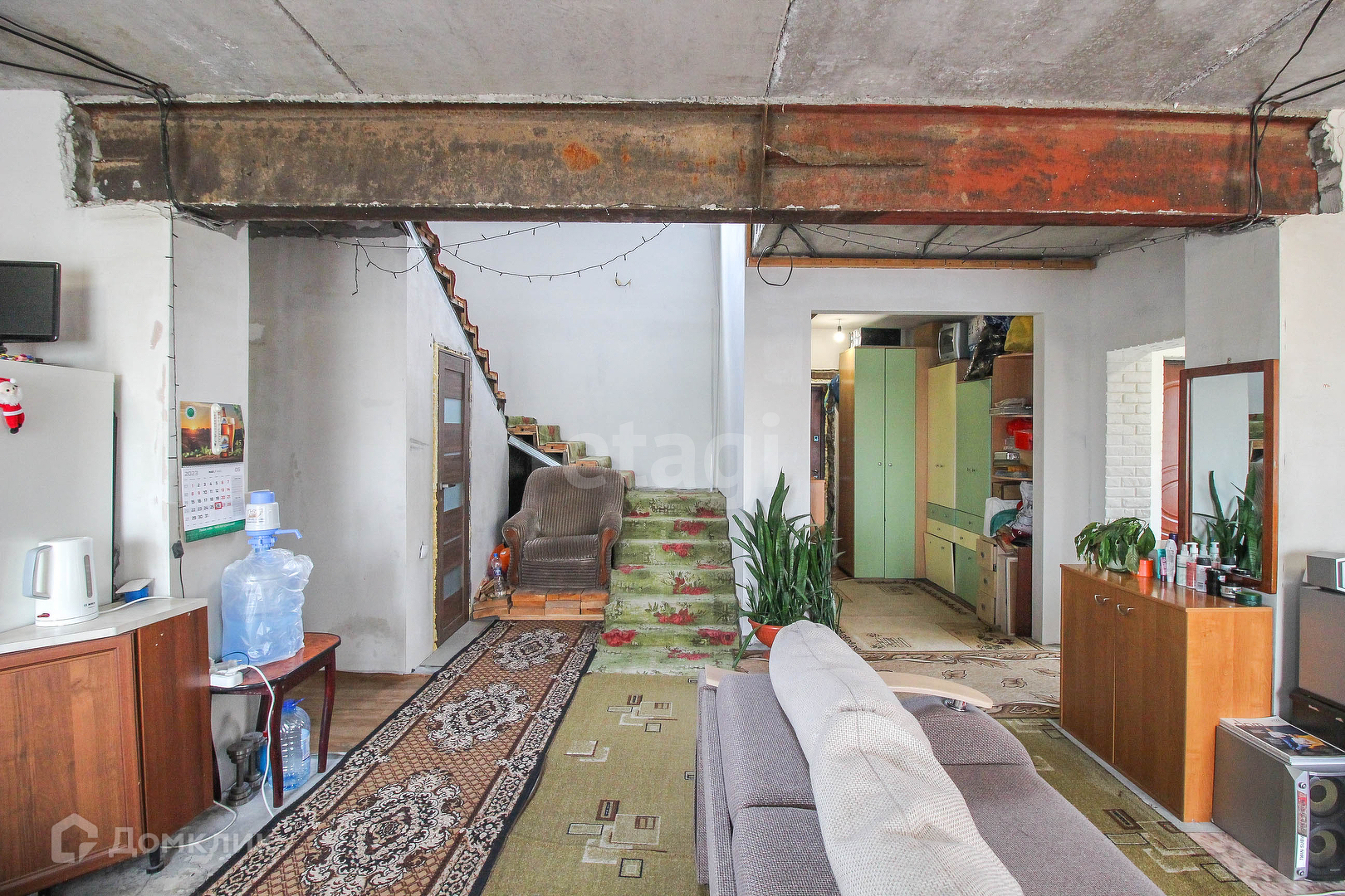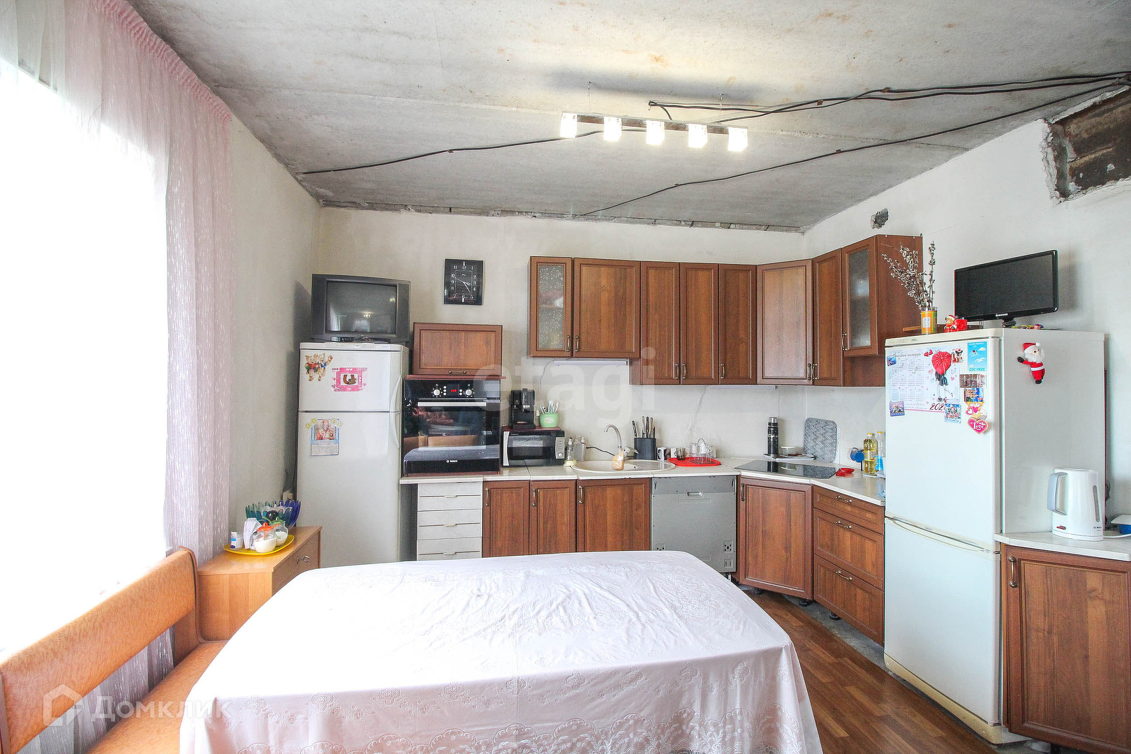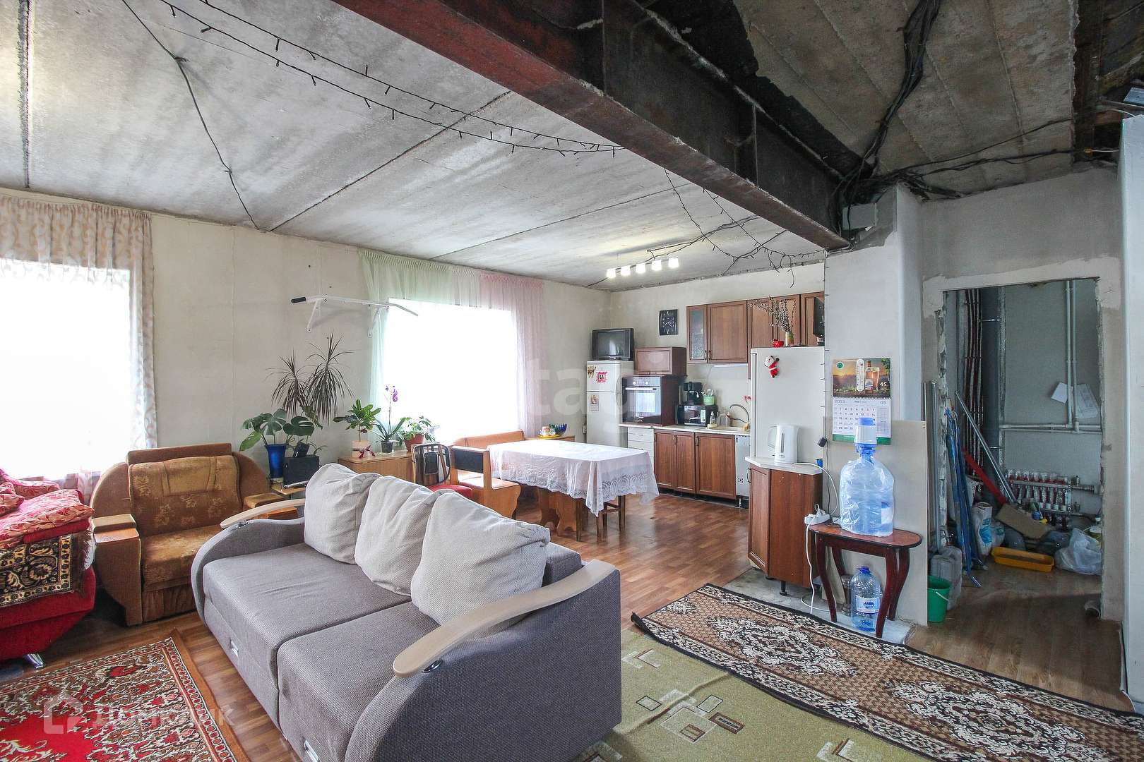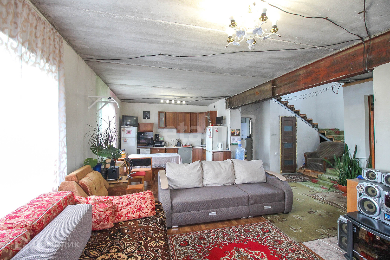 Конструктив: стены из газобетонных блоков+ утеплитель. Во всем доме теплые водяные полы, стоит хороший котёл. Между первым и вторым этажом железо-бетонное перекрытие. Межкомнатные перегородки из силикатного кирпича. Высота потолков 2.7 м.