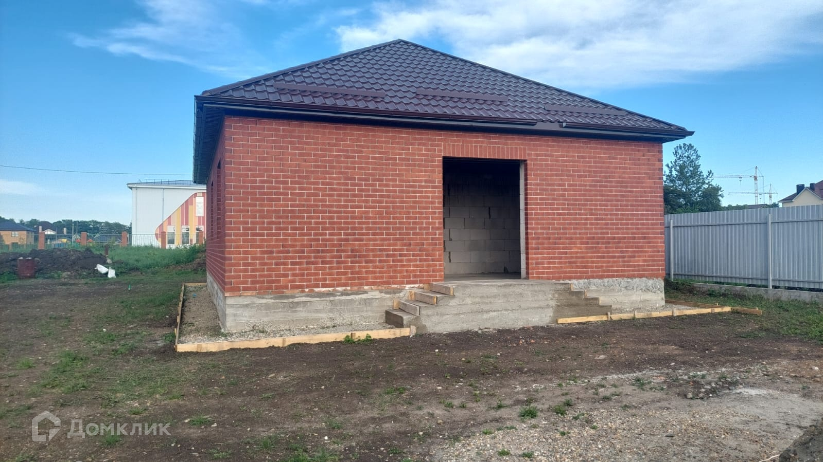 По периметру будет выполнен забор, во дворе отмостка, двери и окна так же входят в стоимость.