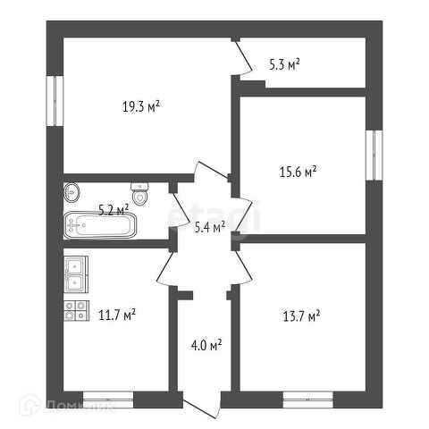 1-этажный дом, 91.2 м2, на продажу в посёлке Пригородном