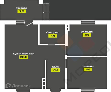 Площадь кухни 23.2 м2