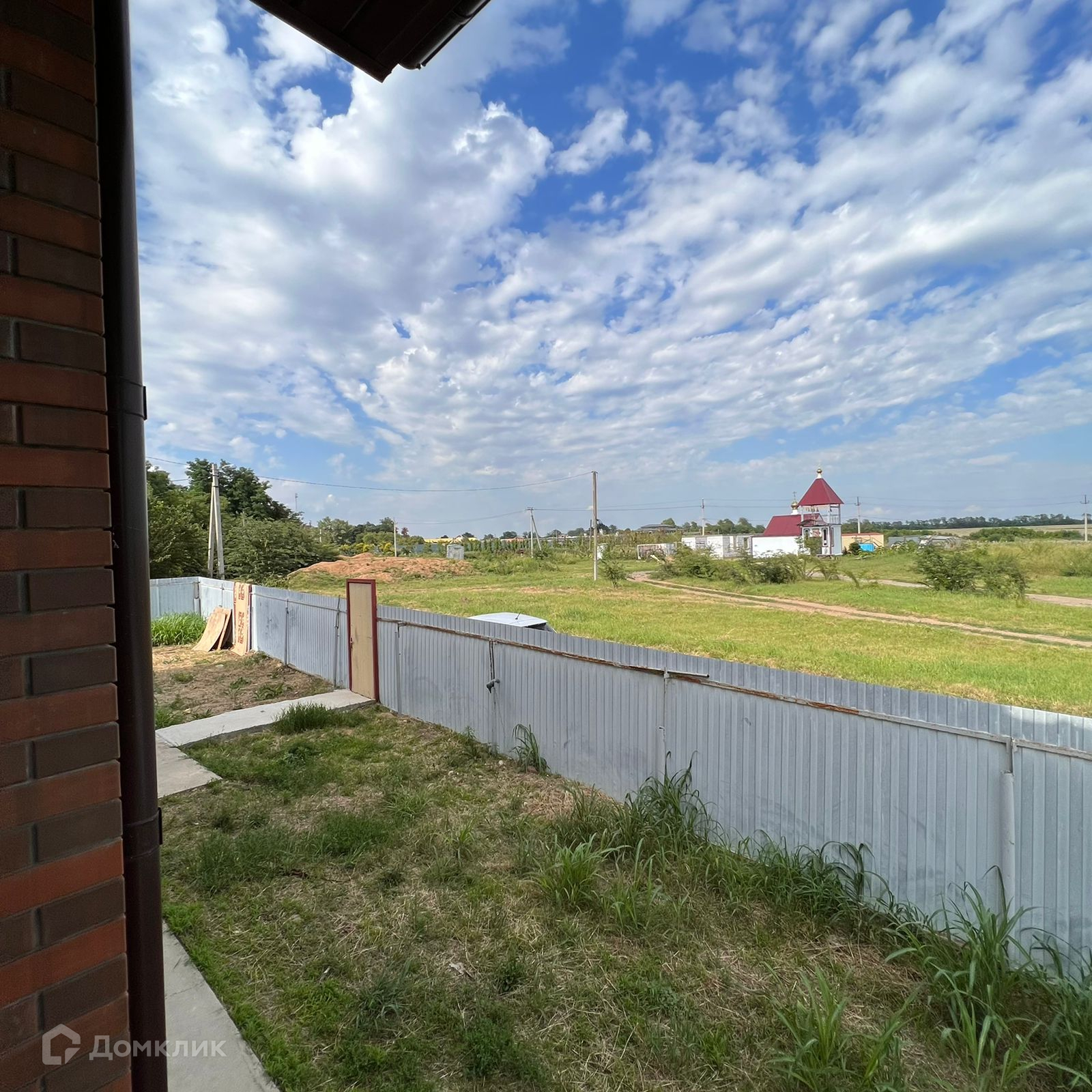 Угловой участок у асфальтированной дороги, только один сосед, напротив — церковь.