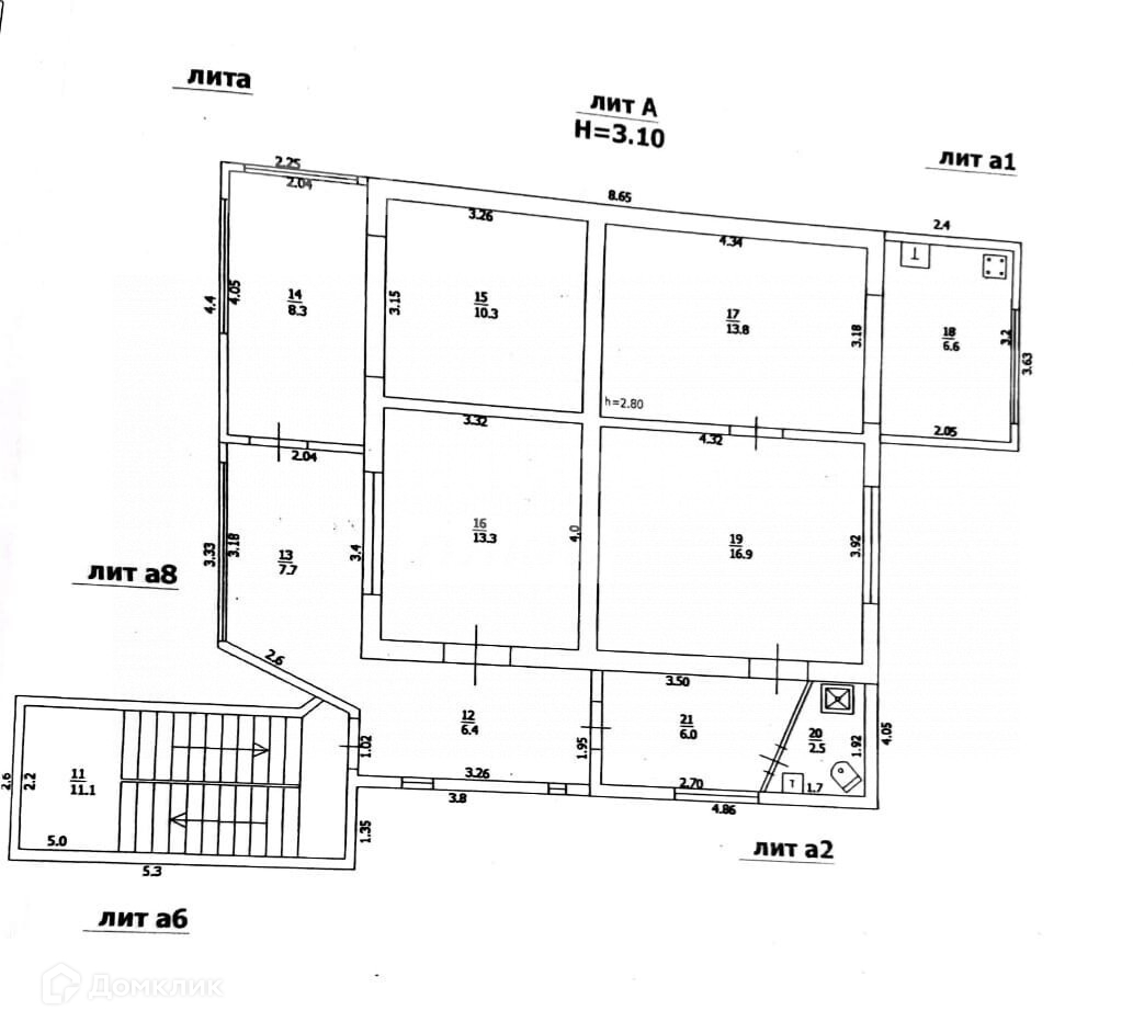 Высота потолков 3.1 м