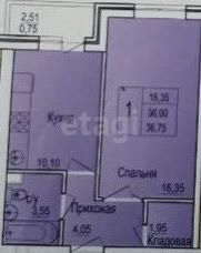 Общая площадь: 35.75 м2