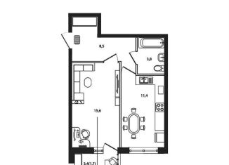 1-комнатная квартира на продажу, 41.1 м2