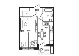 Продажа 1-ком. квартиры, 35.1 м2, жилой комплекс Фруктовый Сад, 3