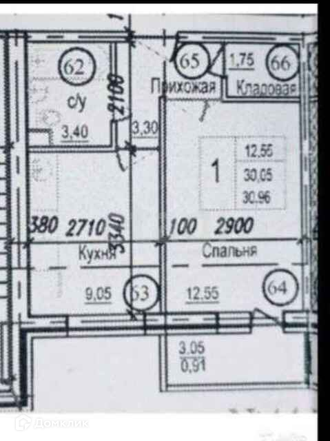 Общая площадь 29.5 м2