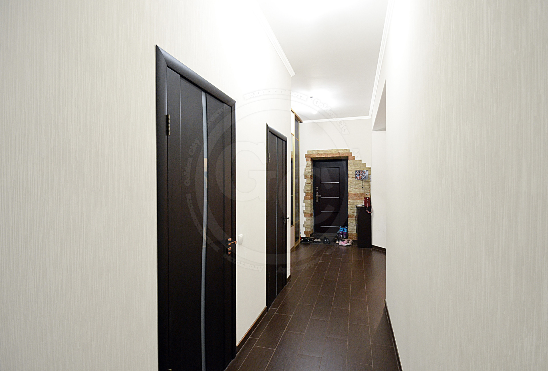 - в ванной комнате, на кухне, в коридоре и туалете - плитка