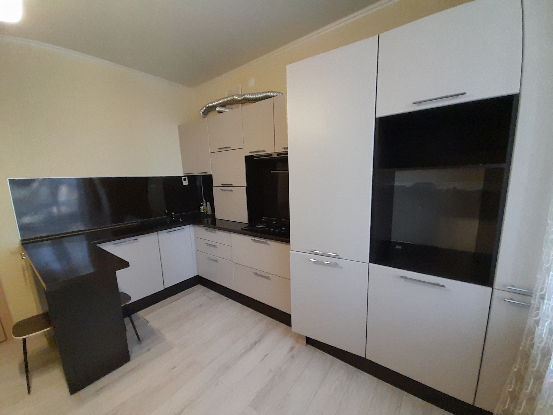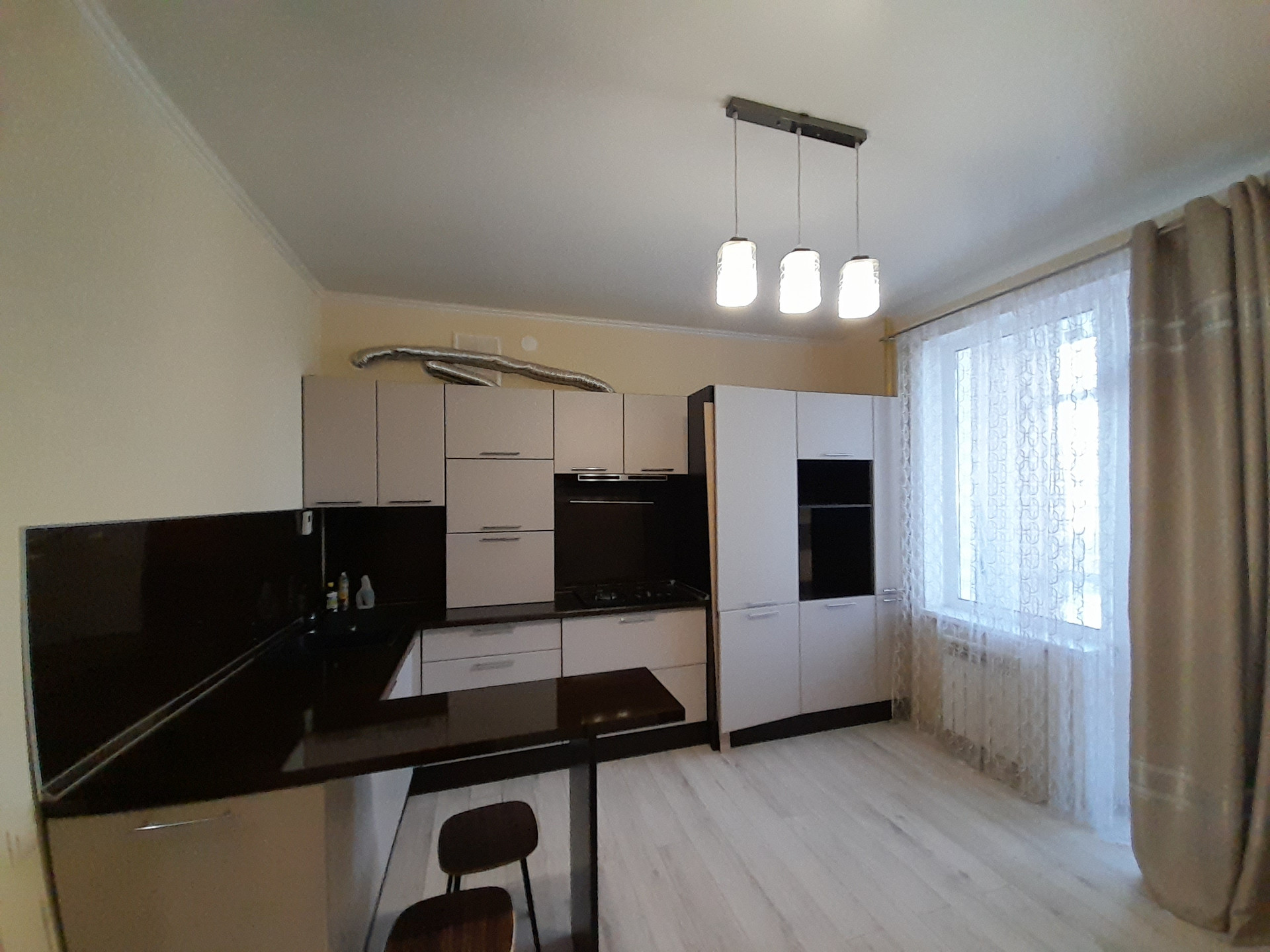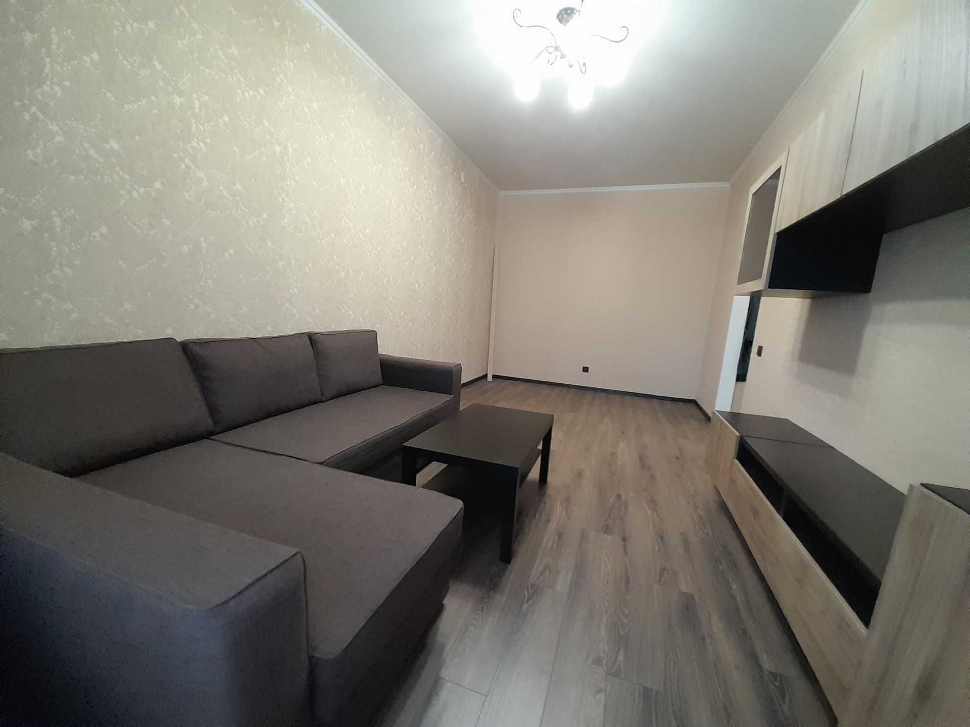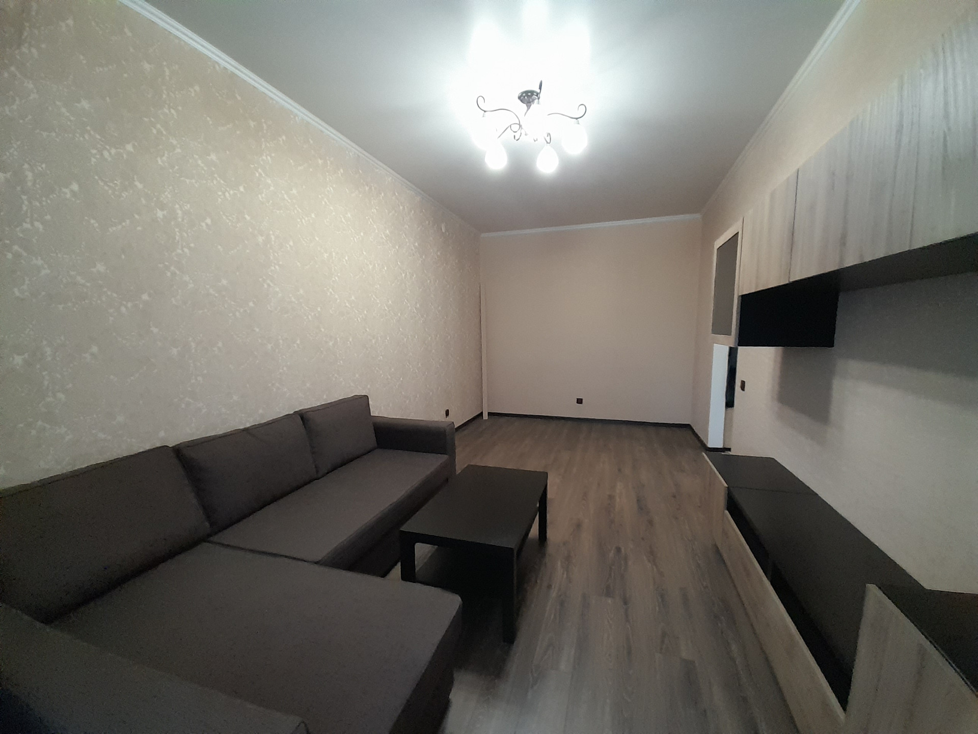В подарок новым собственникам остаётся вместительный кухонный гарнитур со встроенным холодильником, мягкий диван и стенка.