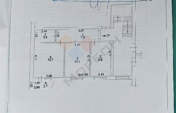 Высота потолков 2.8 м