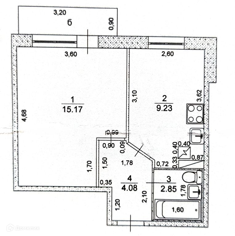 Балкон, лоджия 1 балкон