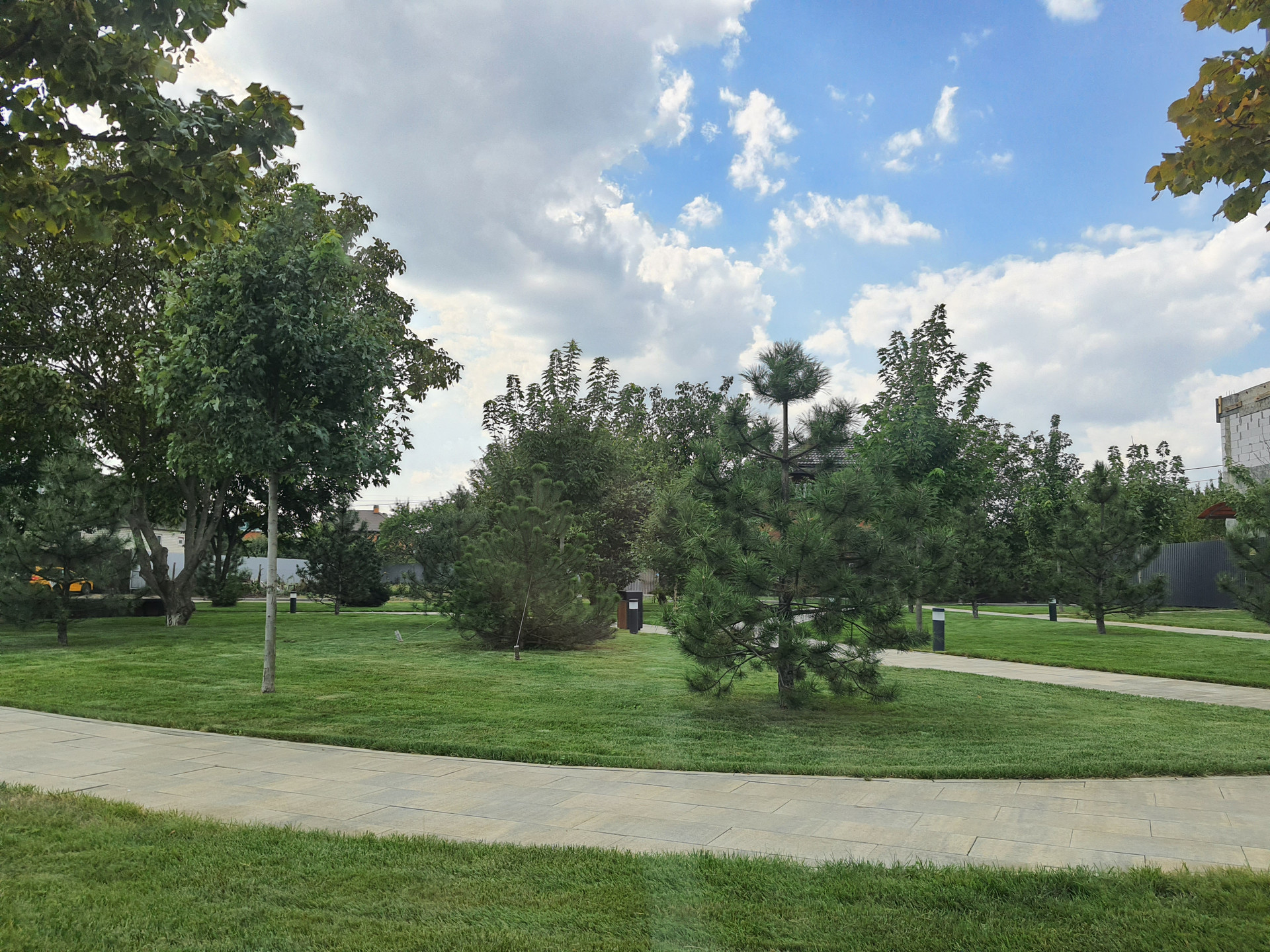Во дворе озеленение, фруктовые деревья, пешеходные дорожки, парковочное место для автомобилей. Территория закрытая от посторонних, видеонаблюдение.