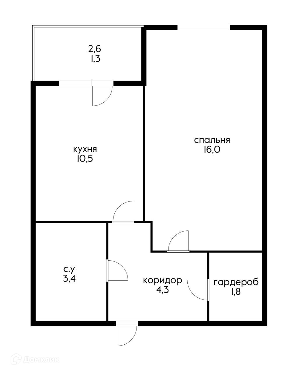 Балкон, лоджия 1 балкон