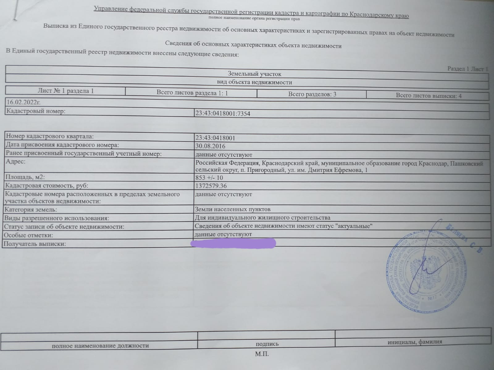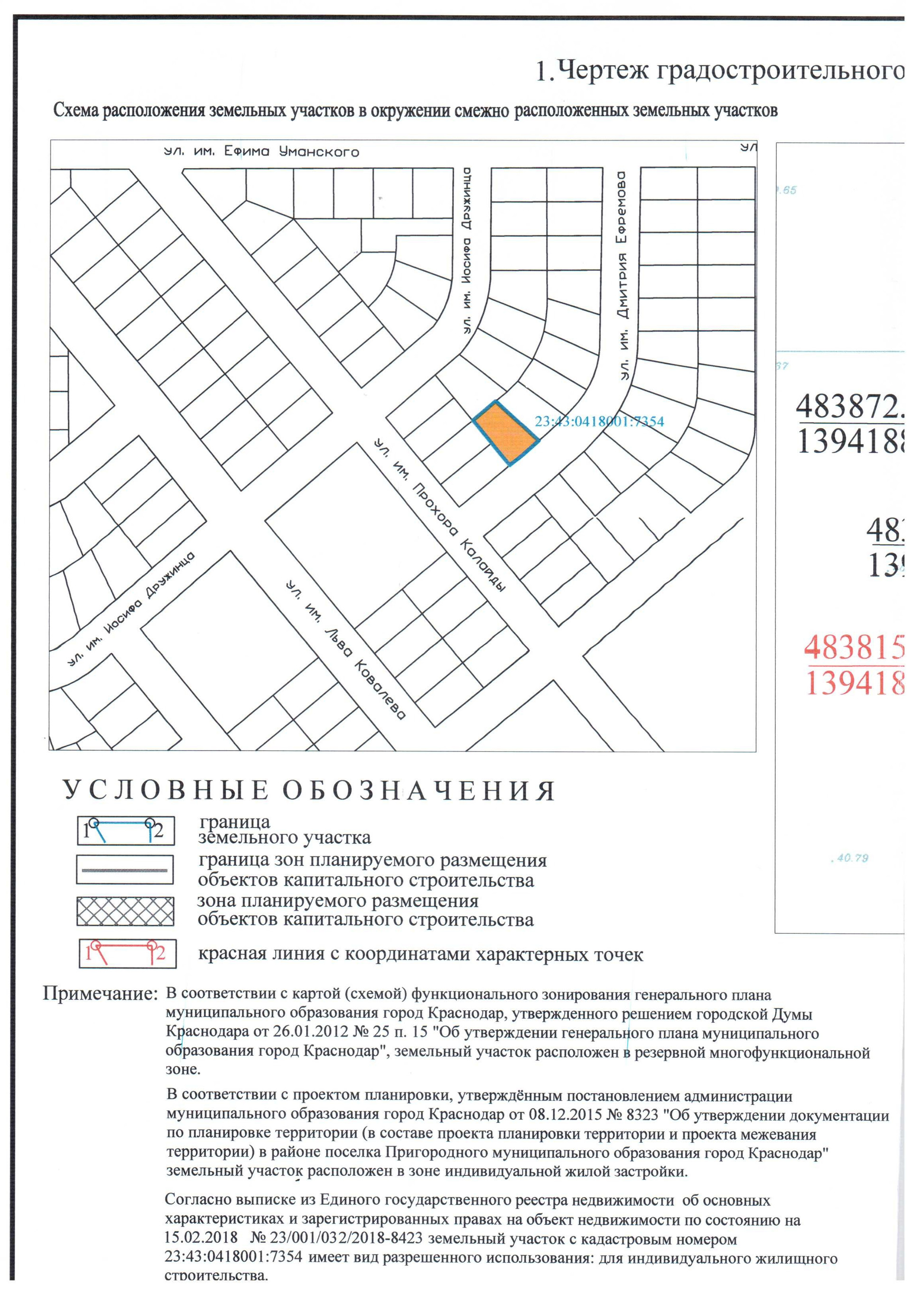 СРОЧНАЯ ПРОДАЖА! СОБСТВЕННИК! Продаю земельный участок с кадастровым номером 23:43:0418001:7354 в активно застраивающемся коттеджном поселке "ПРИГОРОДНЫЙ" (Карасунский округ). Идеально подходит для тех, кто хочет ЖИТЬ ВБЛИЗИ ОТ ГОРОДА - ВДАЛИ ОТ СУЕТЫ. Экологически чистый район, городская прописка. ЗУ граничит с коттеджным поселком "ЗНАМЕНСКИЙ" и "ТРАВА". Участок отмежеванный, ровный, правильной геометрии, назначение - ИЖС. На участке легко разместится просторный дом с террасой, хватит места и для бани, зоны отдыха, барбекю и сада. Ведется работа по присоединению земельного массива к сетям электроснабжения. Работы по благоустройству дорог планируются выполнить в два этапа. Пока идут работы в гравийном исполнении, после этого в асфальтобетонном. Строительно-монтажные работы по газификации планируются в 2024 году. Электричество – в 2023 году! "ПРИГОРОДНЫЙ" расcчитан всего на 628 коттеджей. Согласно утвержденного градостроительного плана на территории коттеджного поселка запланированы 4 детских сада на 900 мест, школа на 1900 мест, 4 парковые зоны, городская поликлиника, спортивный стадион и территории объектов общественно-делового назначения. Ближайшее место отдыха - парк Родные просторы. Так же рядом находится супермаркет Пятерочка, школа №81, магазины первой необходимости, остановки общественного транспорта. В 10 минутах езды самый большой ТРЦ в ЮФО - OZ Мall. Удобный выезд без городских пробок в направлении Черного моря!