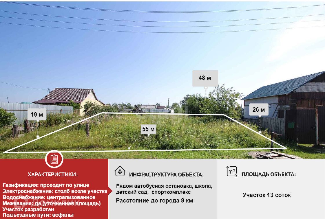 Уважаемые покупатели, предлагаю Вашему вниманию земельный участок 13 соток, в 6 км. от города. Отличное местоположение, спокойная жизнь без городской суеты и в то же время в 10 минутах езды до центра. Рядом все коммуникации: газ, водопровод, электричество. Автобусная остановка в 5 минутах ходьбы, есть школа, детский сад, липовая роща, спорткомплекс, мечеть. В этом году планируется новый водопровод. Подъезд асфальт. Реальному покупателю предусмотрен небольшой торг.