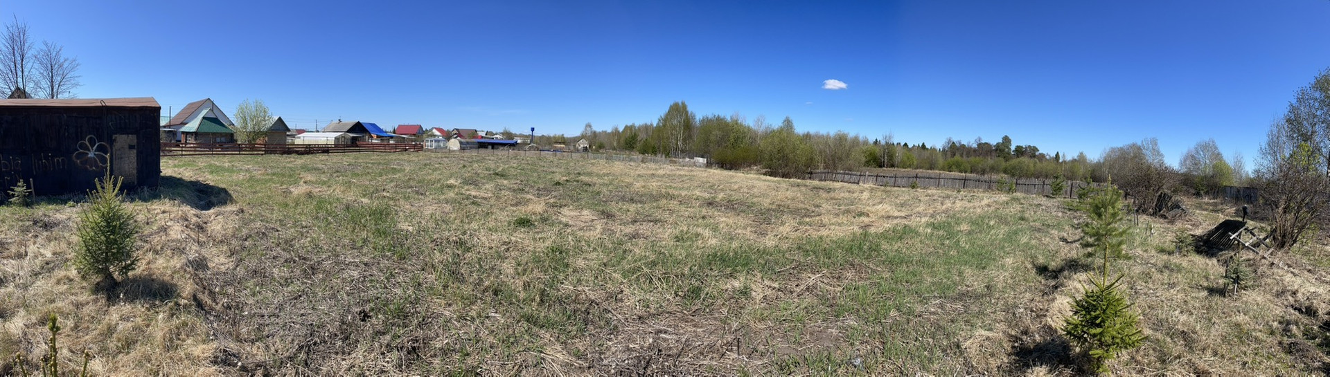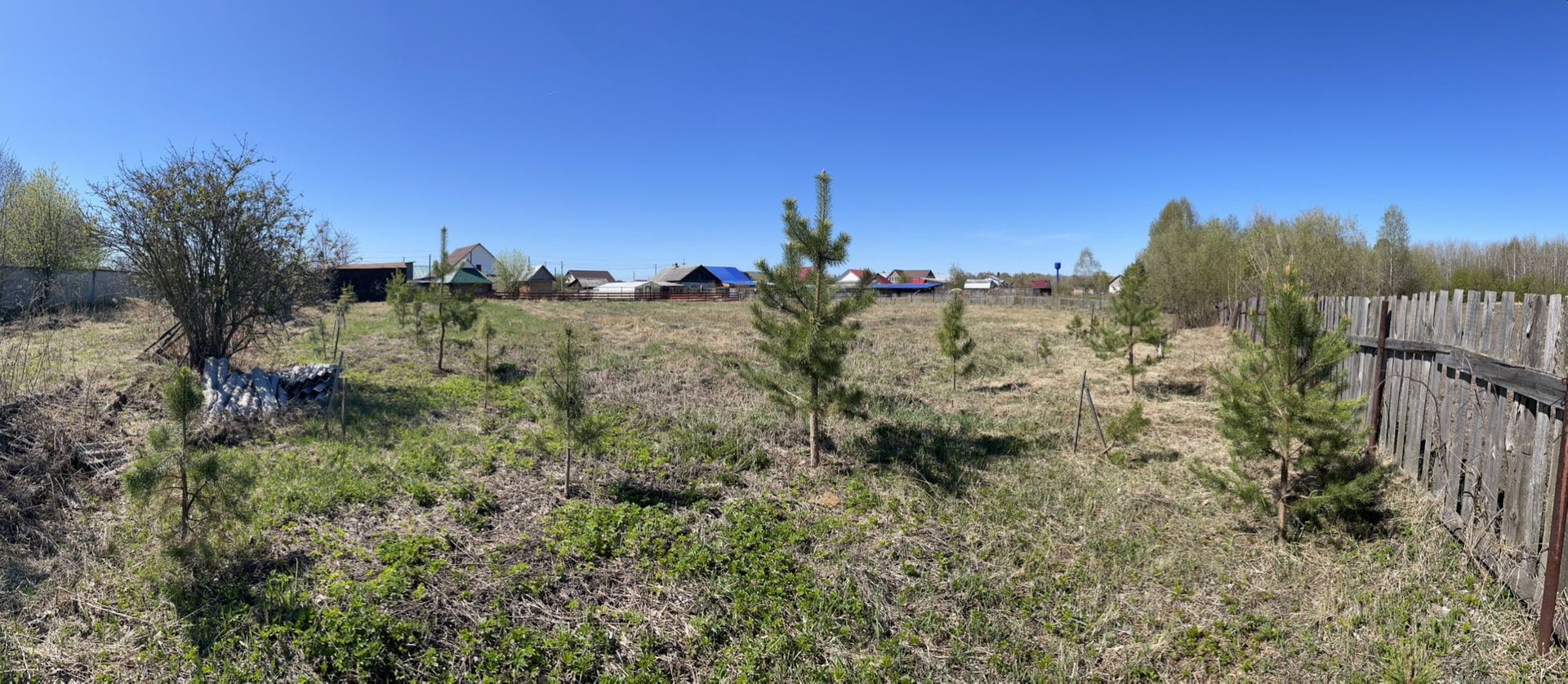 Участок находится на 2 линии от проезжей части, за счет чего чувствуется уединенность и тишина. Рядом лес, участок ровный и ухоженный. Каждый год косим траву и перепахиваем землю. На участке стоит металлический гараж.