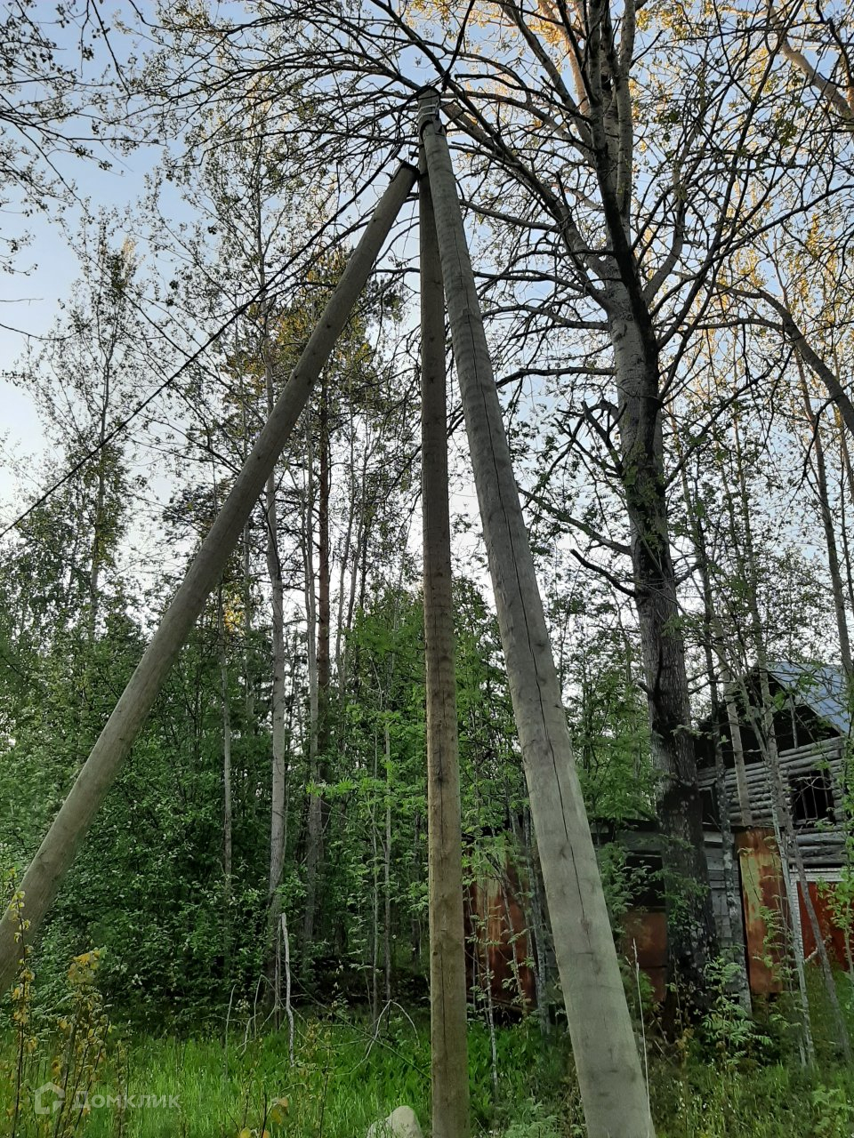 Электрический столб на границе участка.