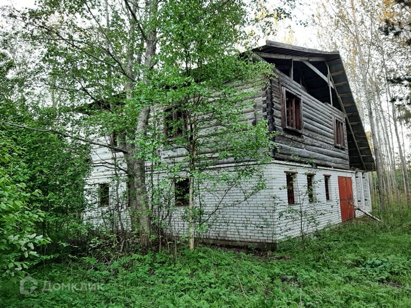 Первый этаж дома из кирпича, второй из бревен.