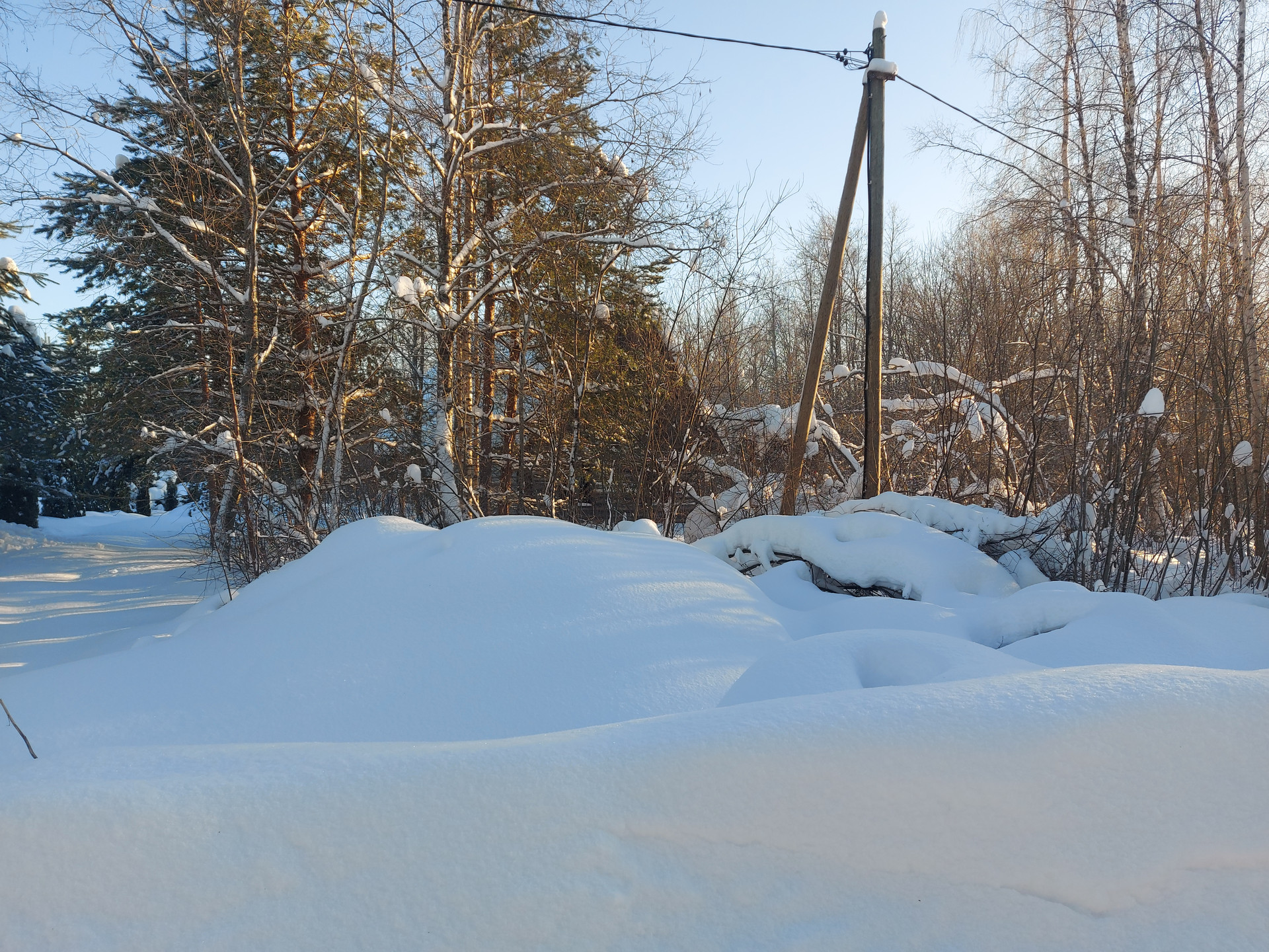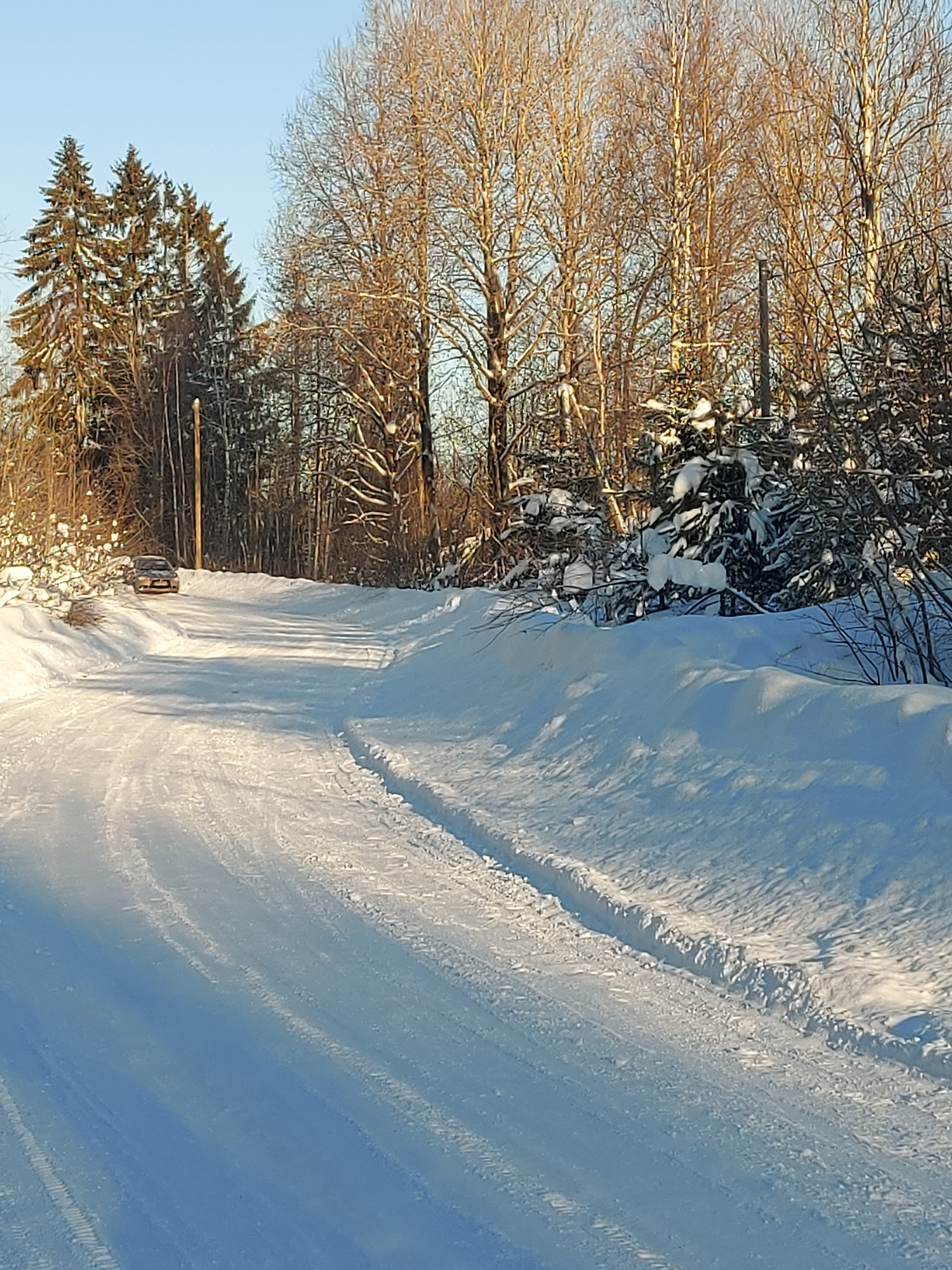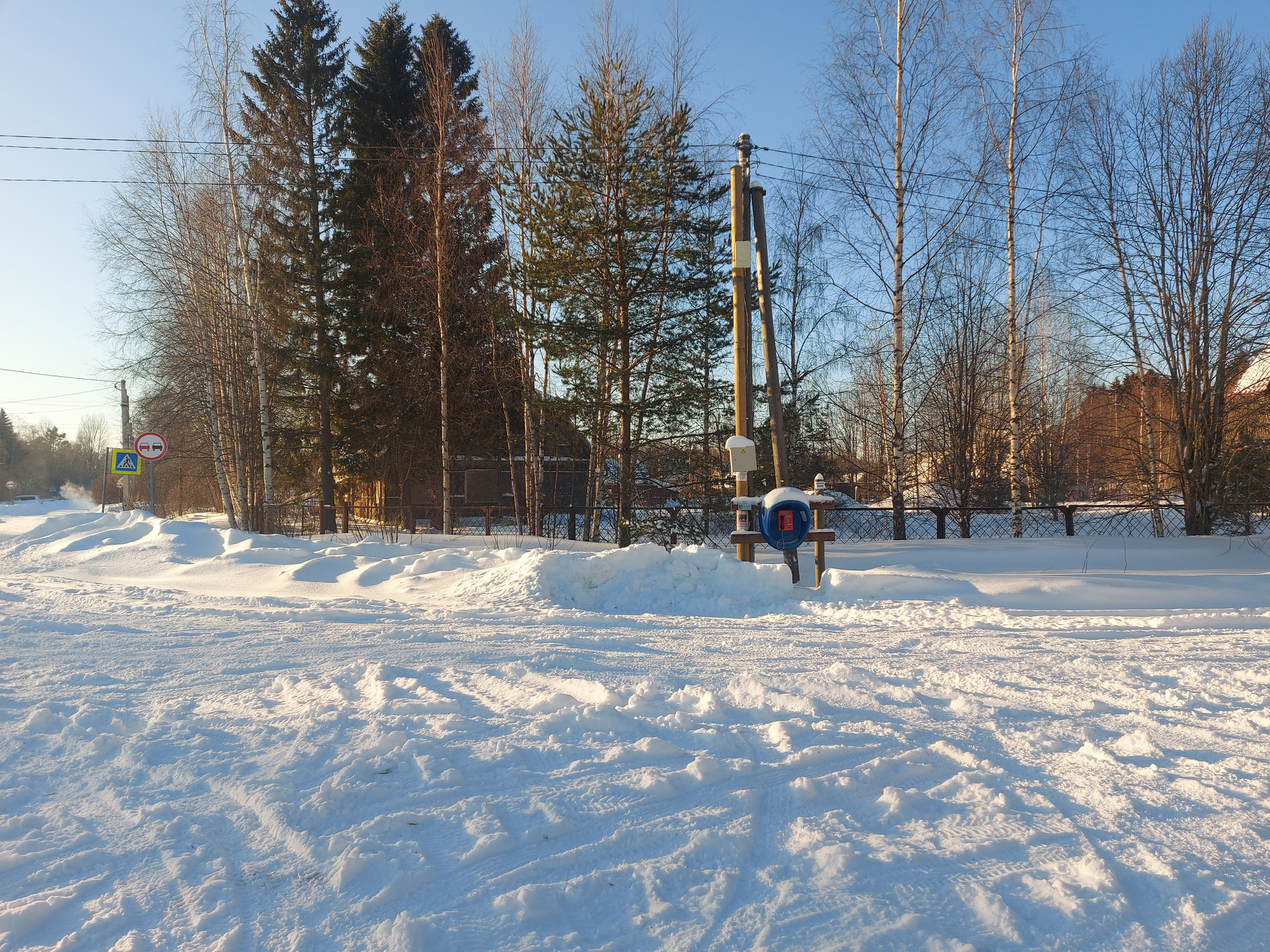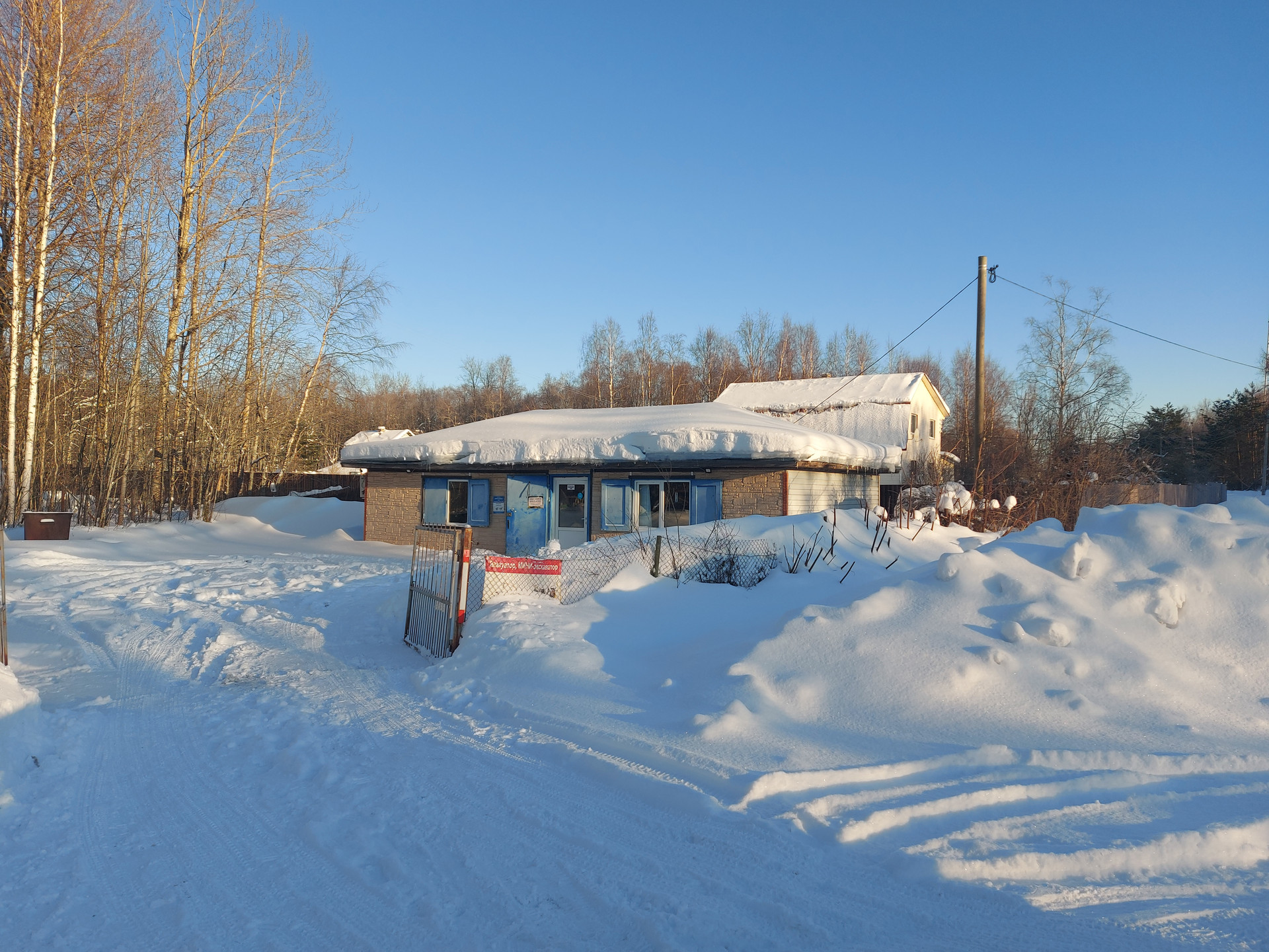 В поселке ходит рейсовый автобус, есть круглогодичный магазин. Дорога до участка асфальт и 5 км грунтовка (обещают сделать асфальт), хорошо чистят зимой.