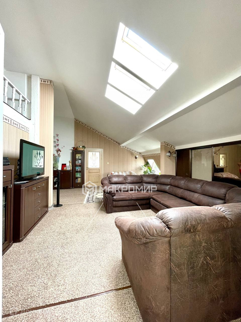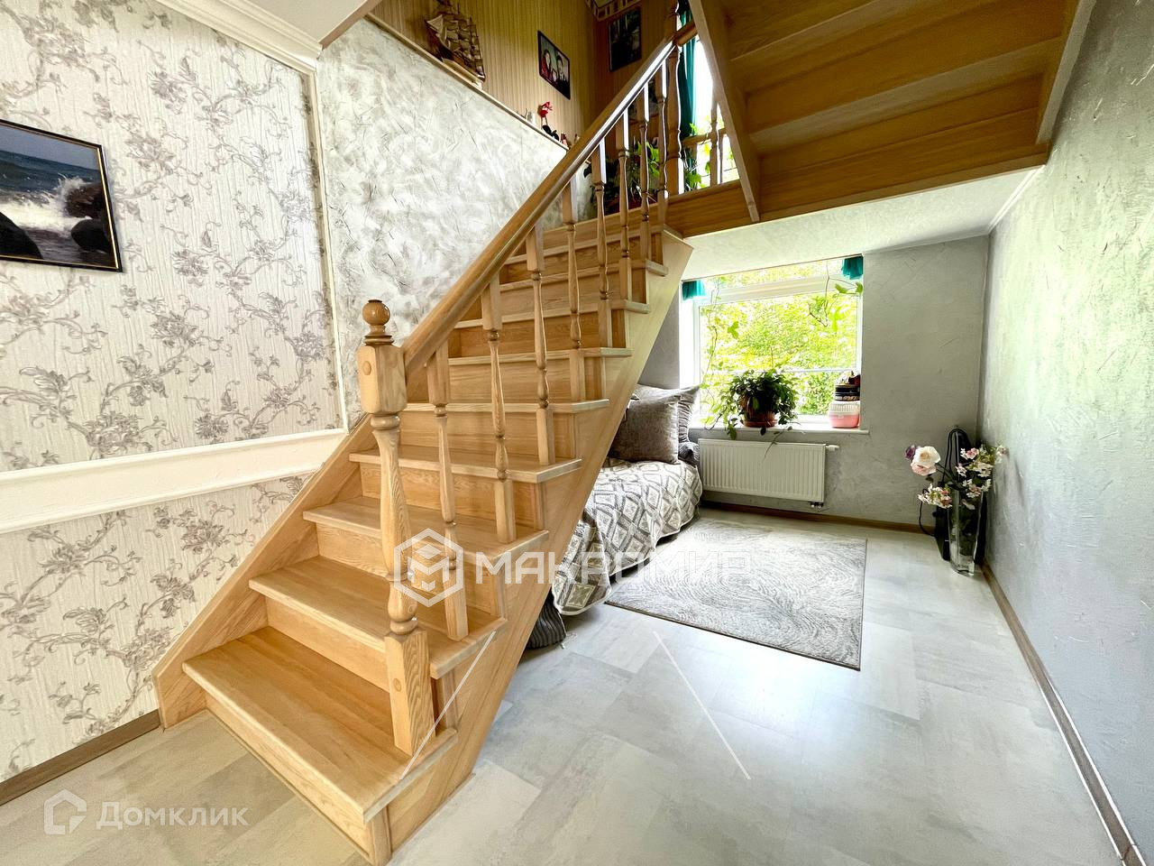 На второй этаж ведет добротная лестница из массива ясеня. На этом уровне находятся холл 54м2 со вторым светом и бельэтажом, две спальни ( каждая по 22 м2), отапливаемый зимний сад, большой хозяйский санузел с окном, ванной, душевой кабиной! Максимальная высота потолка 3,7 м что создает приятное ощущение пространства. Хоть этаж и мансардный, высота стены у окон больше 2 метров.