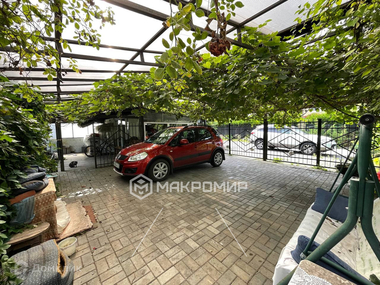 Помимо самого дома есть также крытая стоянка на две машины, домик для отдыха и шашлыков, внешняя хозяйственная постройка. Дом огорожен добротным каменным забором.