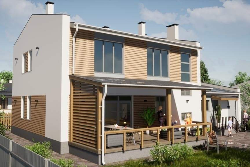 Это дома современного дизайна с применением новейших технологий строительства, наружные стены с фасадной теплоизоляционной системой с композитной штукатуркой с декоративными элементами немецкого бренда Caparol.