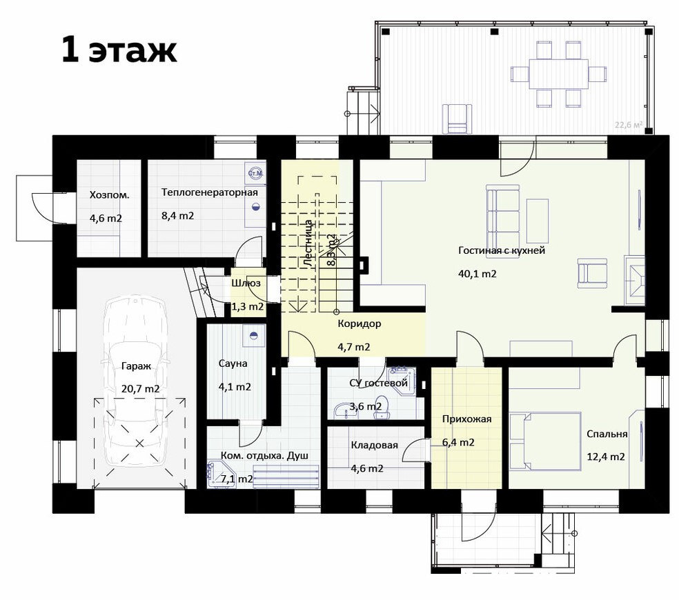 Светлая уютная большая кухня-гостиная 40,1 кв.м. с выходом на веранду 22,5кв.м.