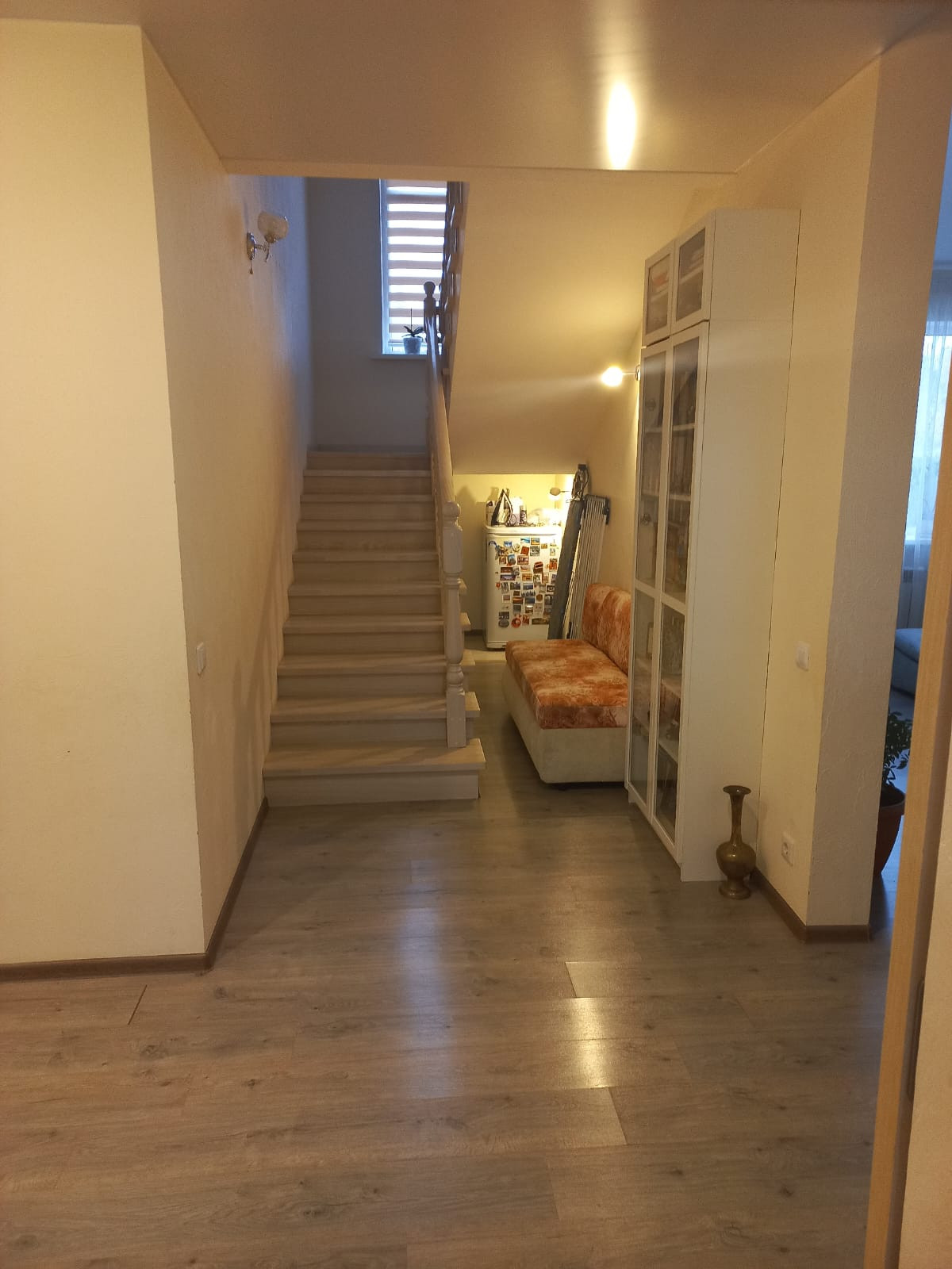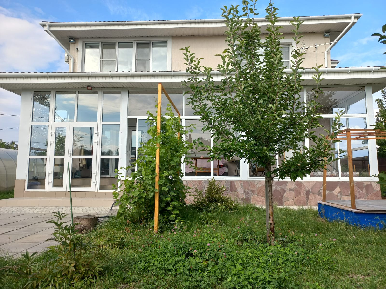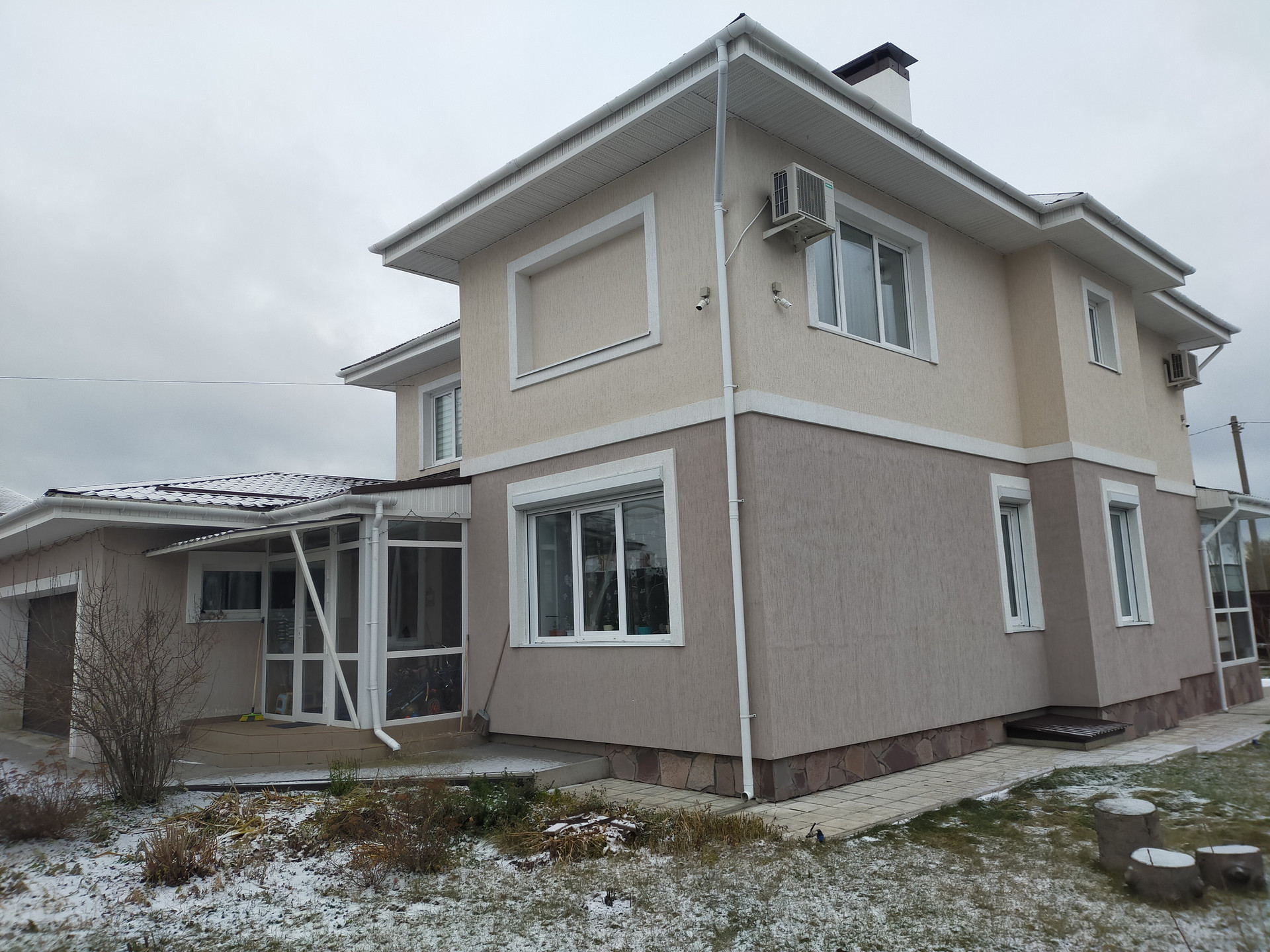 Новый двухэтажный уютный дом на тихой улице для очень комфортного и безопасного проживания семьи. 2017 год постройки. В шаговой доступности школа, детский сад, ДК, пекарня, магазин. В 5 минутах от города. По периметру забор из профлиста. Стены: керамзитоблок толщина 40 см, утеплитель Ф25, штукатурка, окраска. Фундамент: свайно-ростверковый (42 сваи) + плита (10 см). Перекрытия: полноценные ж/б плиты. Крыша: металлочерепица, перекрытие на крышу с утеплителем (карбон 15 см) +техэтаж. Отопление: газовое (2 котла), водяные радиаторы и теплые полы. Электричество: 3-х фазное, 220 и 380 кВт. Водоснабжение: центральное (есть насос нагнетения), фильтр и многоуровневая очистка. Установлен накопительный бойлер 160 л. Выгребная яма на 7 м. Дом очень светлый и комфортный! Теплый-зимой, прохлада-летом. Установлены 2-х камерные (профиль 70) стеклопакеты, автоматические рольставни (окна, ворота, гараж). По периметру установлены 8 видеокамер (он-лайн), видеодомофон. Жилая площадь 130 кв.м. Высота потолков 2,8м и 2,6м. Отделка: пол - плитка и ламинат, натяжной потолок, обои, декор. штукатурка. 1 этаж - санузел, котельная, гостевая спальня, кухня-столовая с выходом на застекленную веранду, гостиная. 2 этаж - 3 спальни, кабинет, санузел. Гараж на 2 авто. Кухонный гарнитур с техникой, кондиционеры и частично мебель – оставляем. Участок ровный, ухоженный с декоративными и плодовыми насаждениями. Газон, детский уголок, площадка для отдыха, теплица. Документы готовы. Подходит под ипотеку и сертификаты. Смотрите план и фото.