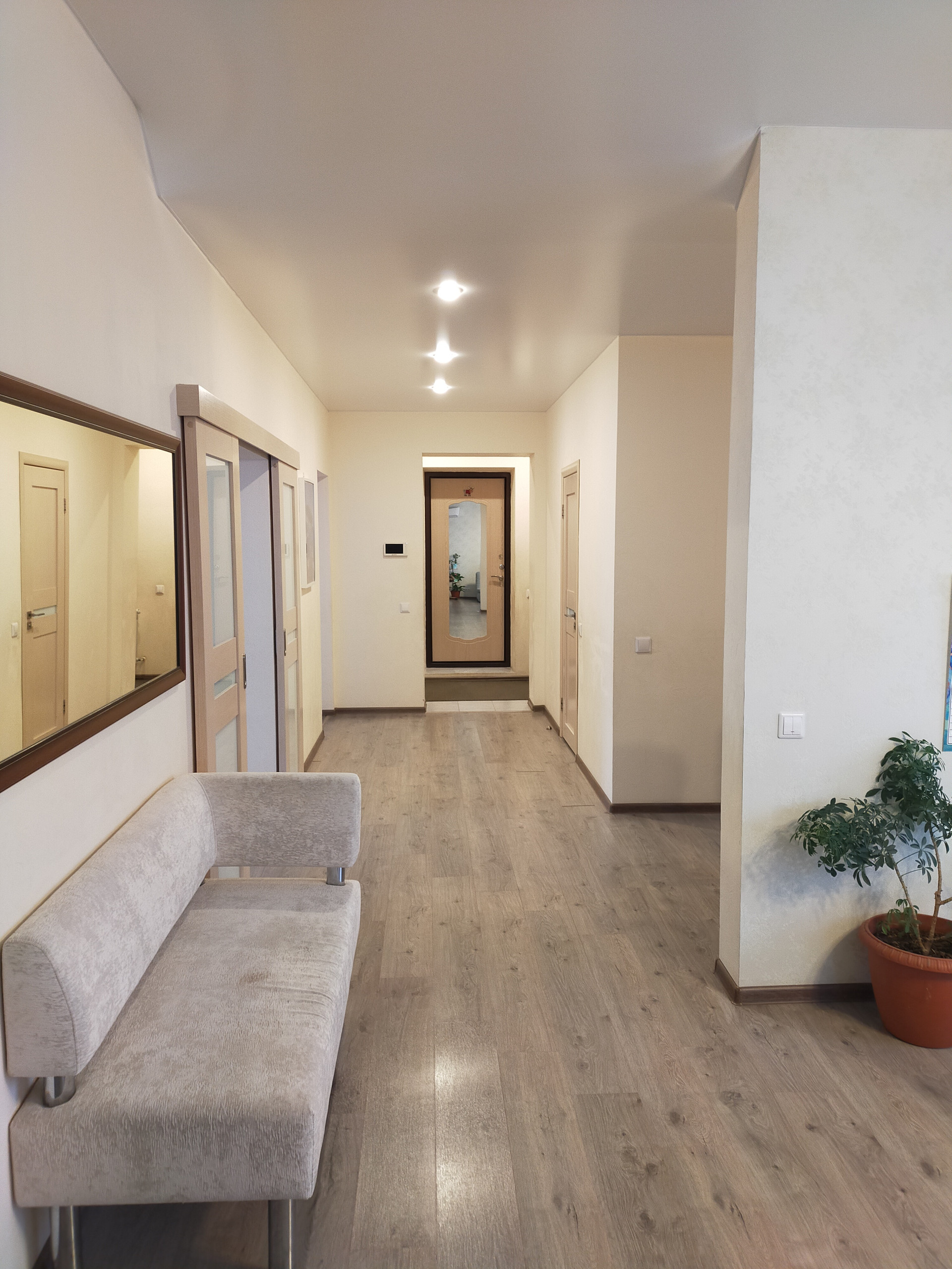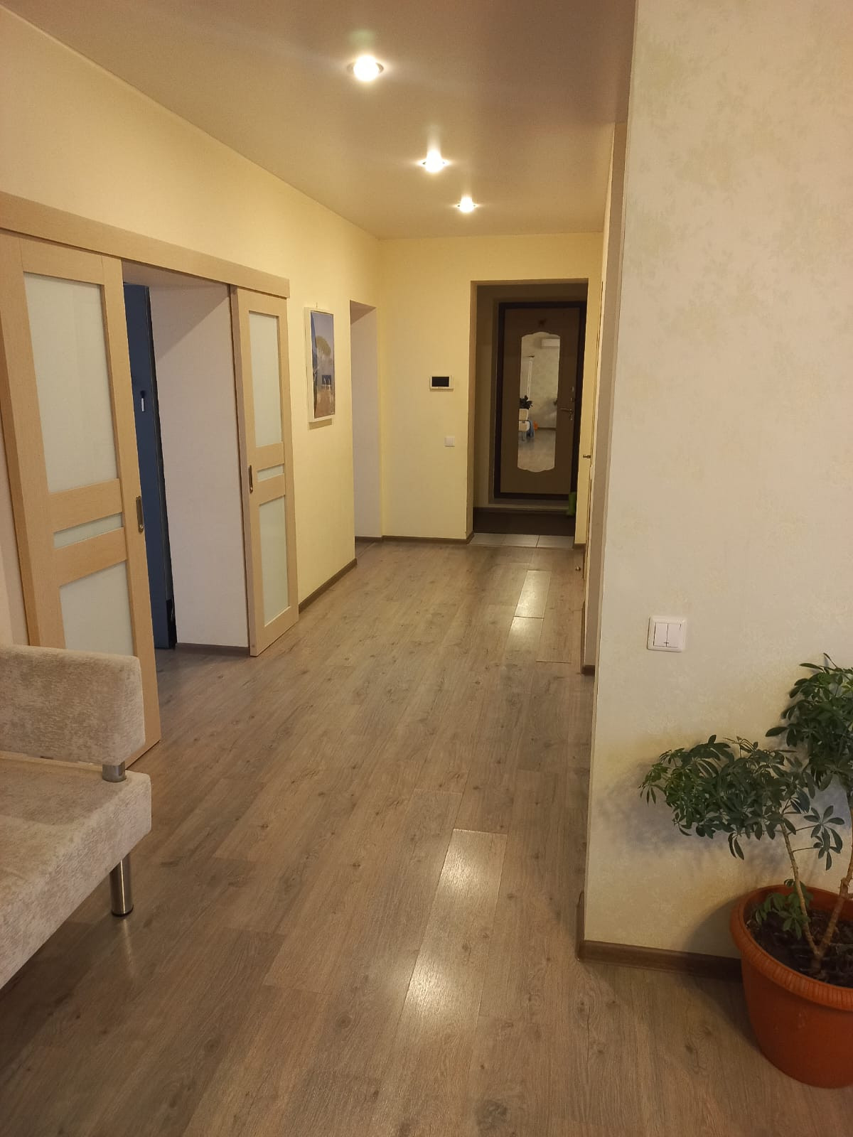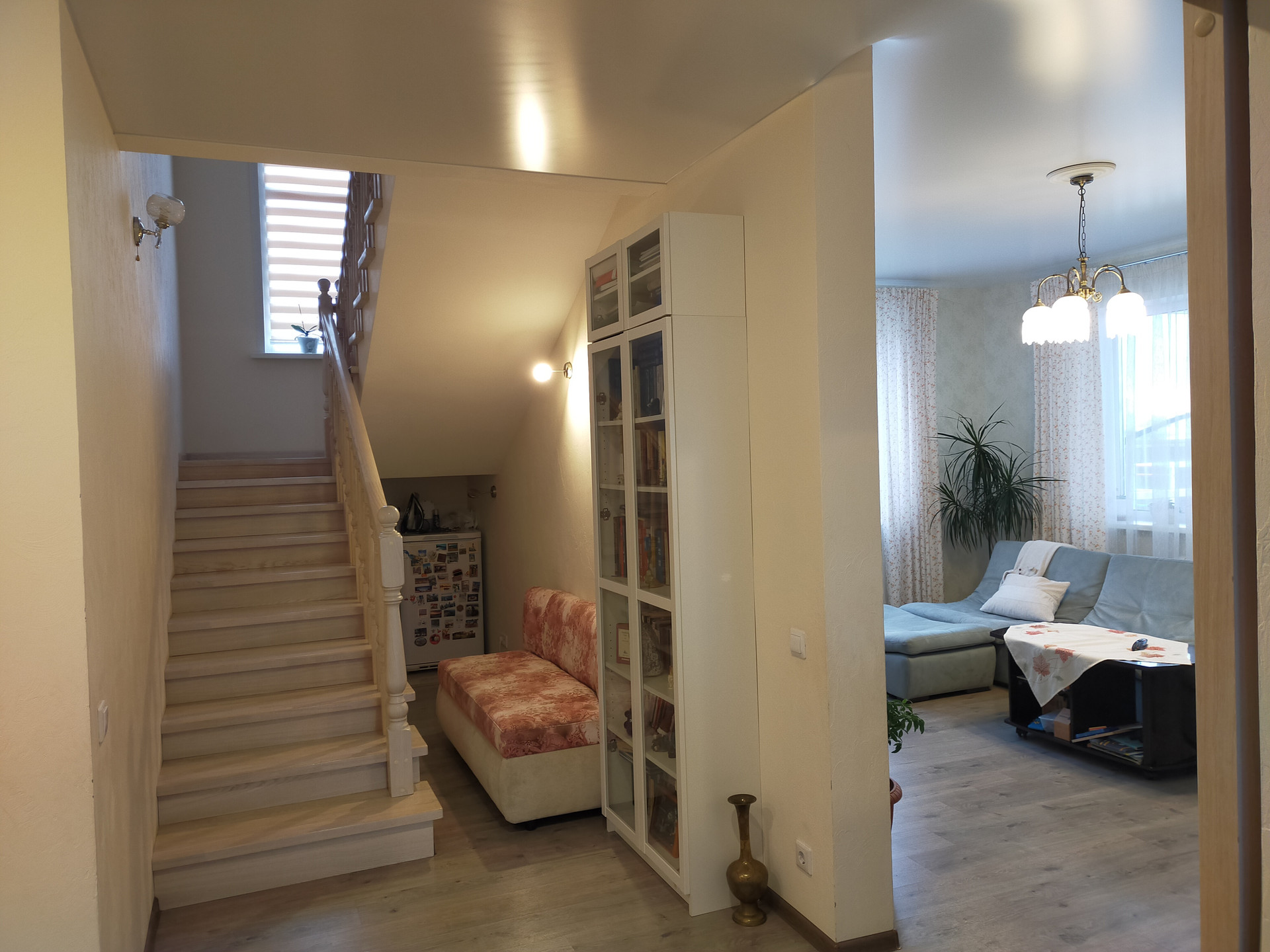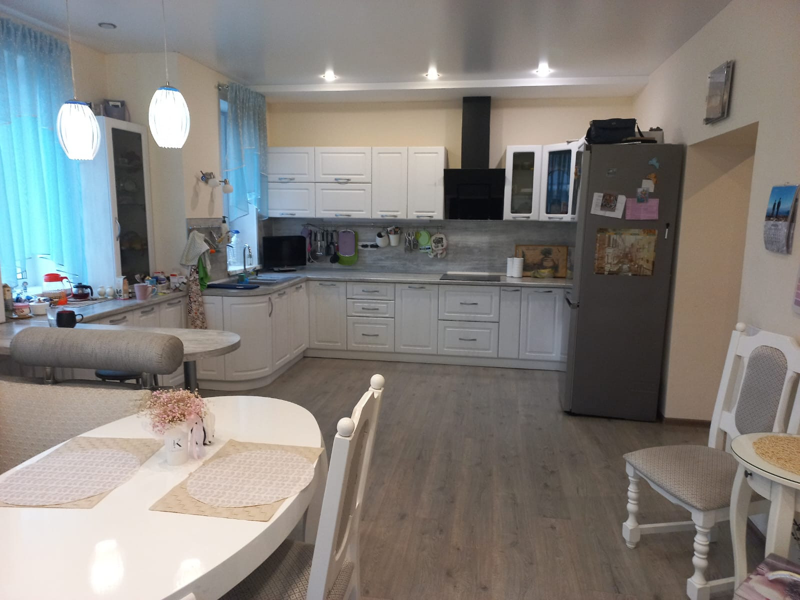 Новый двухэтажный уютный дом на тихой улице для очень комфортного и безопасного проживания семьи. 2017 год постройки. В шаговой доступности школа, детский сад, ДК, пекарня, магазин. В 5 минутах от города. По периметру забор из профлиста. Стены: керамзитоблок толщина 40 см, утеплитель Ф25, штукатурка, окраска. Фундамент: свайно-ростверковый (42 сваи) + плита (10 см). Перекрытия: полноценные ж/б плиты. Крыша: металлочерепица, перекрытие на крышу с утеплителем (карбон 15 см) +техэтаж. Отопление: газовое (2 котла), водяные радиаторы и теплые полы. Электричество: 3-х фазное, 220 и 380 кВт. Водоснабжение: центральное (есть насос нагнетения), фильтр и многоуровневая очистка. Установлен накопительный бойлер 160 л. Выгребная яма на 7 м. Дом очень светлый и комфортный! Теплый-зимой, прохлада-летом. Установлены 2-х камерные (профиль 70) стеклопакеты, автоматические рольставни (окна, ворота, гараж). По периметру установлены 8 видеокамер (он-лайн), видеодомофон. Жилая площадь 130 кв.м. Высота потолков 2,8м и 2,6м. Отделка: пол - плитка и ламинат, натяжной потолок, обои, декор. штукатурка. 1 этаж - санузел, котельная, гостевая спальня, кухня-столовая с выходом на застекленную веранду, гостиная. 2 этаж - 3 спальни, кабинет, санузел. Гараж на 2 авто. Кухонный гарнитур с техникой, кондиционеры и частично мебель – оставляем. Участок ровный, ухоженный с декоративными и плодовыми насаждениями. Газон, детский уголок, площадка для отдыха, теплица. Документы готовы. Подходит под ипотеку и сертификаты. Смотрите план и фото.