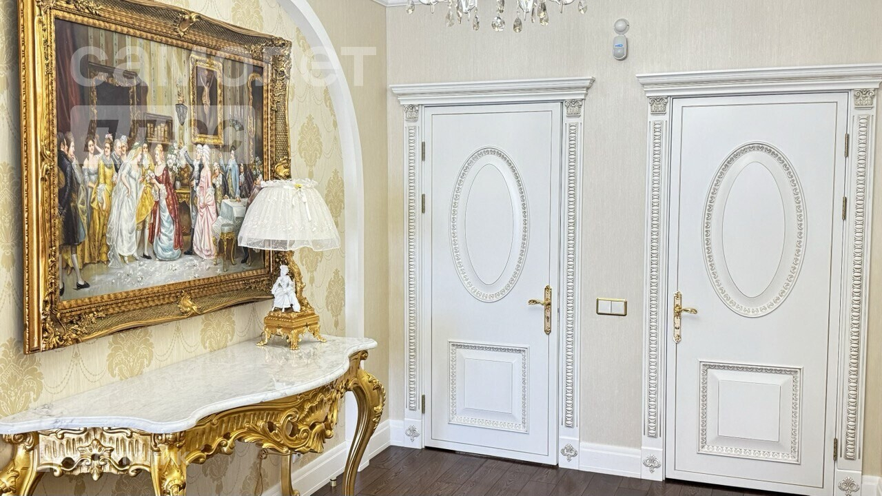 Ремонт сделан по единому дизайн-проекту, в классическом стиле, дорогостоящими и качественными материалами, такими, например, как беленый дуб, импортная керамическая плитка и керамогранит, современная дорогостоящая фурнитура.