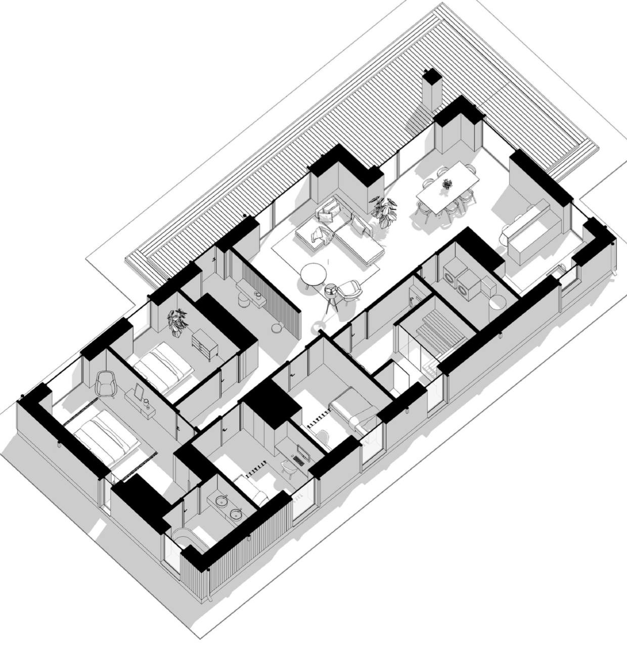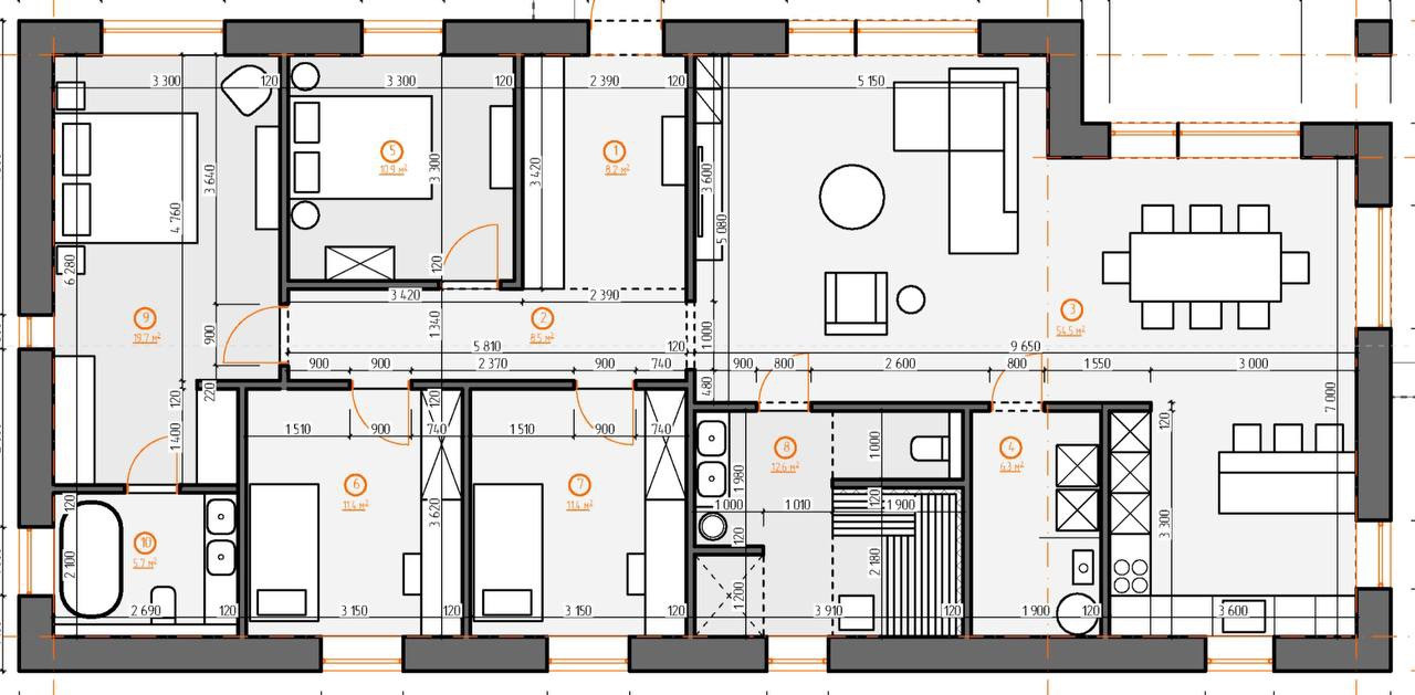 Дом отвечает всем современным требованиям для комфортного проживания большой семьи из 3-5 человек: большая кухня гостиная 55 м.кв. с выходом на открытую веранду, 2 детские спальни по 11,4 м.кв., мастер-спальня с собственным сан.узлом и зоной «под гардеробную» - 26 м.кв., гостевой сан.узел с сауной-18 м.кв., отдельная котельная с чистовой отделкой - на полу плитка, стены крашенные, которую так же можно использовать под постирочную или переформотировать под еще одну спальню и сан.узел!